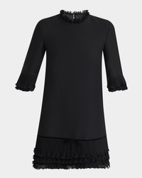 - Valentino Garavani mini dress in silk crepe with pleated ruffles - Jewel neckline - Elbow sleeves - Hem falls above the knee - A-line silhouette - Invisible back zipper - Silk - Lining: Silk - Made in Italy