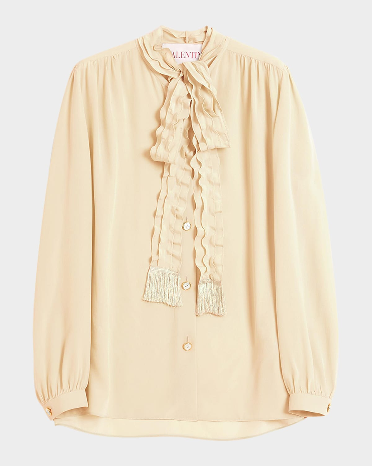 Valentino Garavani blouse with a ruffle neck tie High neckline; button front Long sleeves; button cuffs Relaxed fit Silk Made in Italy