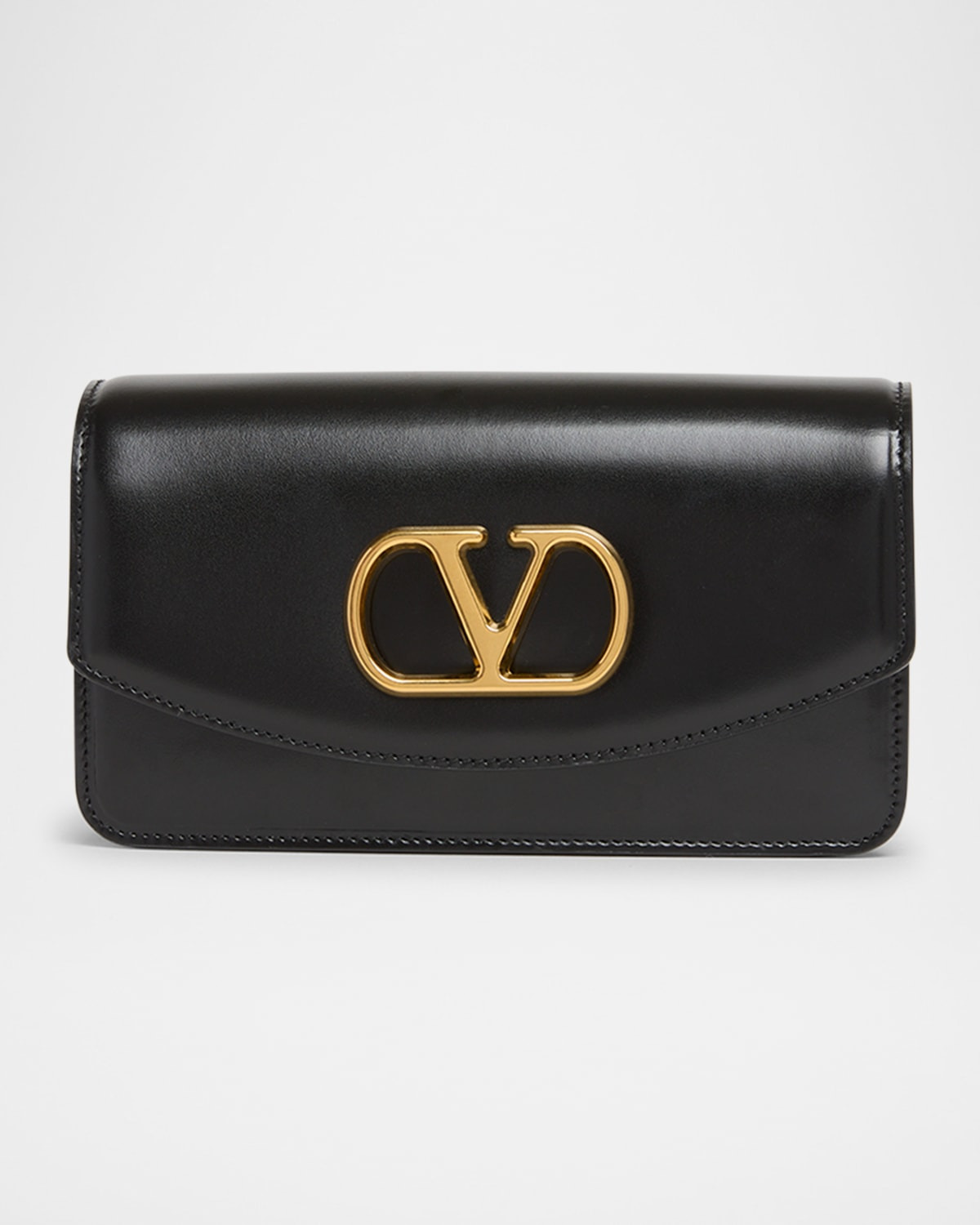 - Valentino Garavani "Vain" smooth leather clutch bag with signature VLOGO accent - Removable chain shoulder strap - Can be worn as a clutch or shoulder bag - Envelope flap top with magnetic closure - Interior, one slip pocket - Approx. 4.1"H x 7.5"W x 1.8"D - Made in Italy