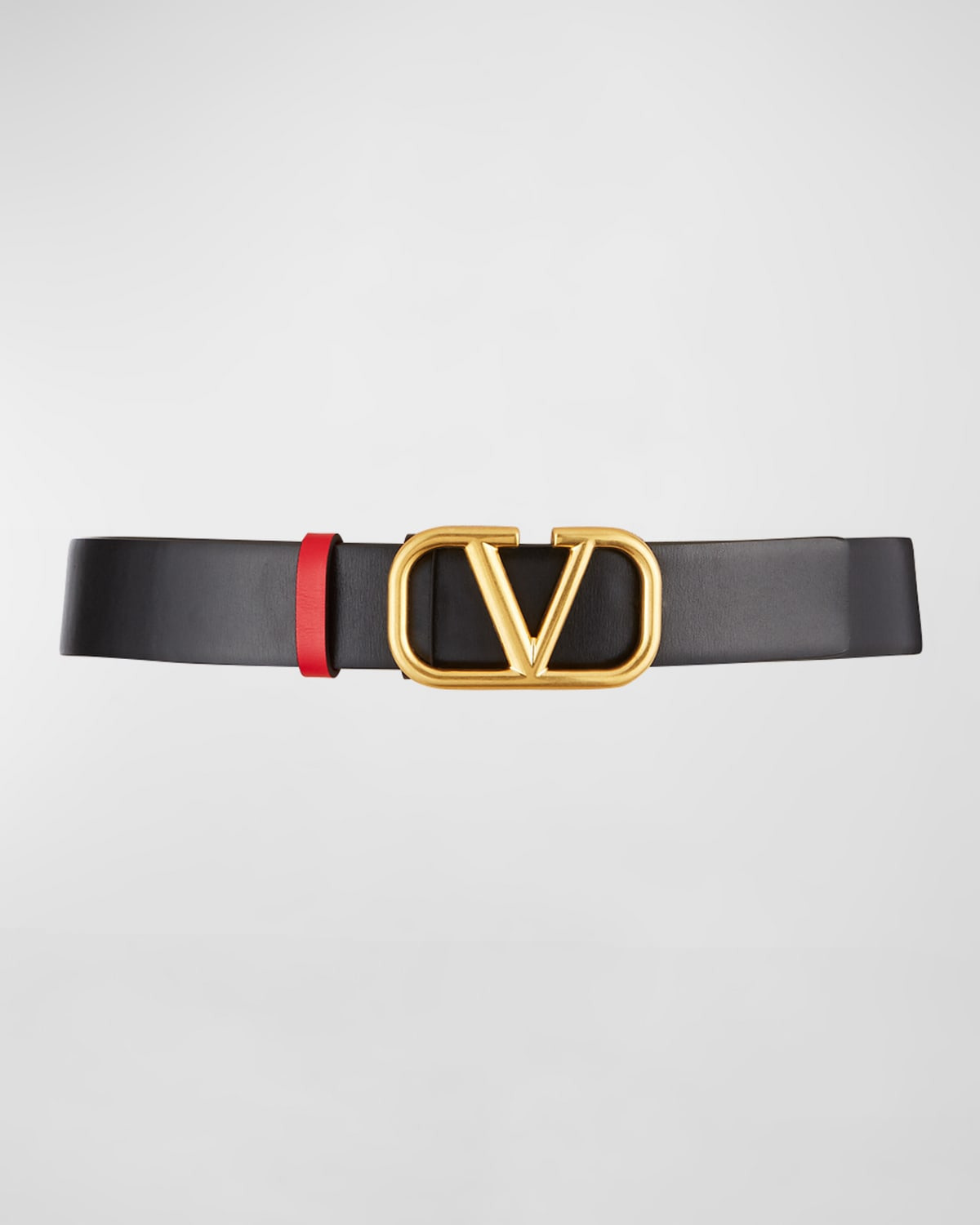 - Valentino Garavani reversible calf leather belt. - Approx. 1.1"W (3cm). - Polished golden VLOGO buckle. - Made in Italy.