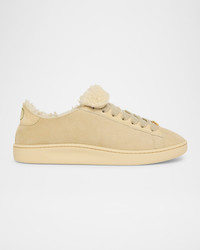VLogo Shearling-Lined Suede Low-Top Sneakers