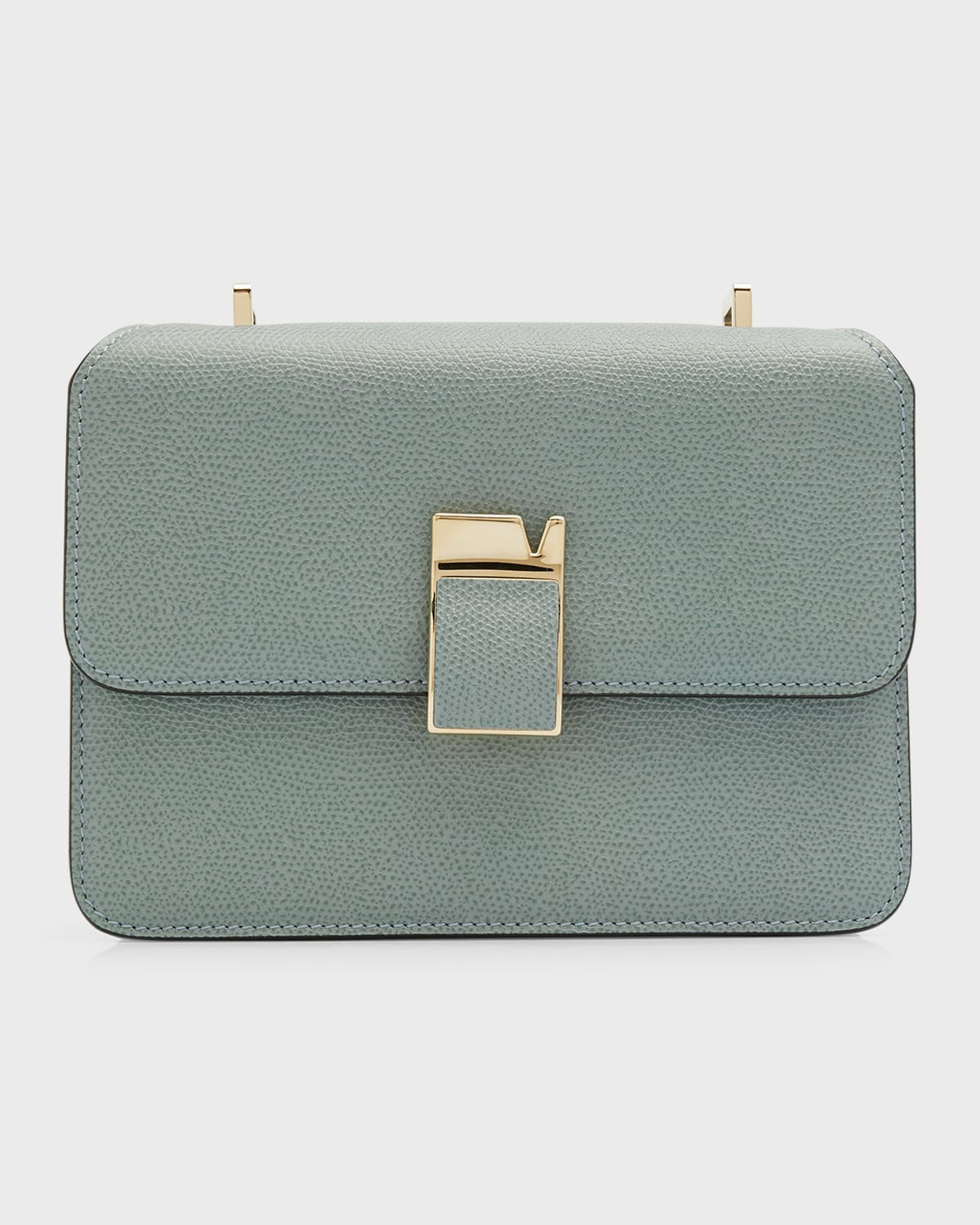 - Valextra "Nolo" crossbody bag in calf leather - Removable, adjustable crossbody strap - Flap top loops through metal hardware - Exterior, back slip pocket - Interior, one slip pocket - Approx. 5.5"H x 7.5"W x 2.5"D - Made in Italy
