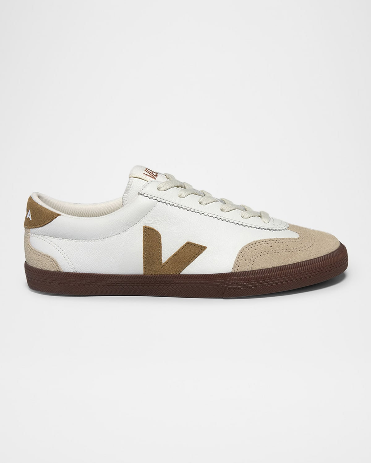 - VEJA "Volley" sneakers in colorblock leather, cotton, and suede - Signature side V logo - Flat heel - Round wing-tip toe - Lace-up vamp - Logo on backstay - Lining: Recycled polyester - Rubber outsole - Hand wash - Made in Brazil