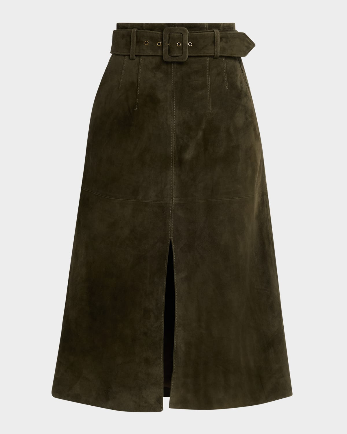 - Crafted from supple calf suede, the "Alexie" midi skirt by Veronica Beard features a detachable belted waist for versatile styling. - High rise - A-line silhouette - Center front slit - Side zip closure - Leather - Lining: Polyester - Professional cleaning recommended - Imported