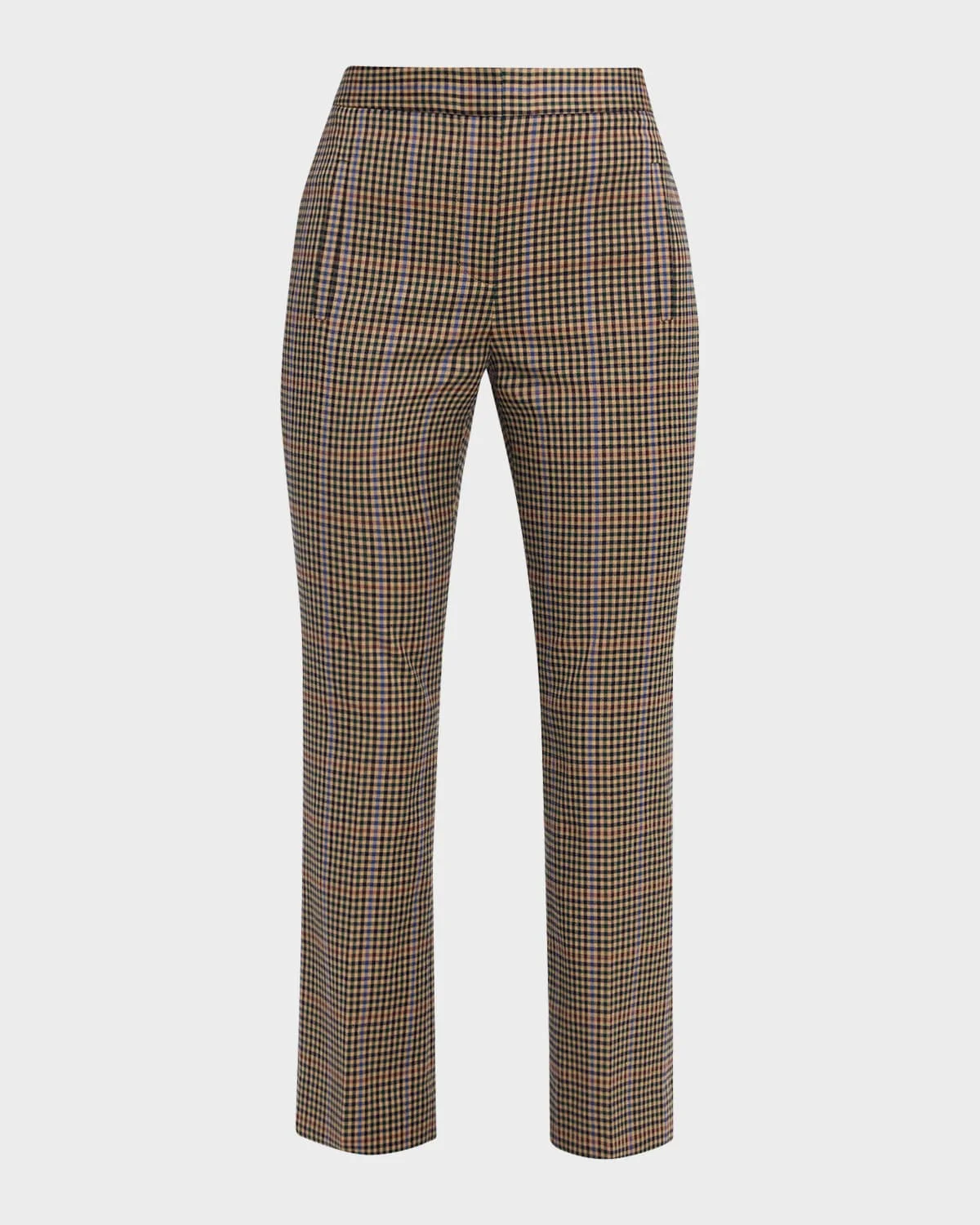 Veronica Beard "Arte" straightleg pants in a multicolor plaid Approx. 10.1" rise; 27" inseam High rise Fourpocket style Slim fit Cropped length Hook/zip fly Polyester/viscose/elastane Lining: Polyester Dry clean Imported