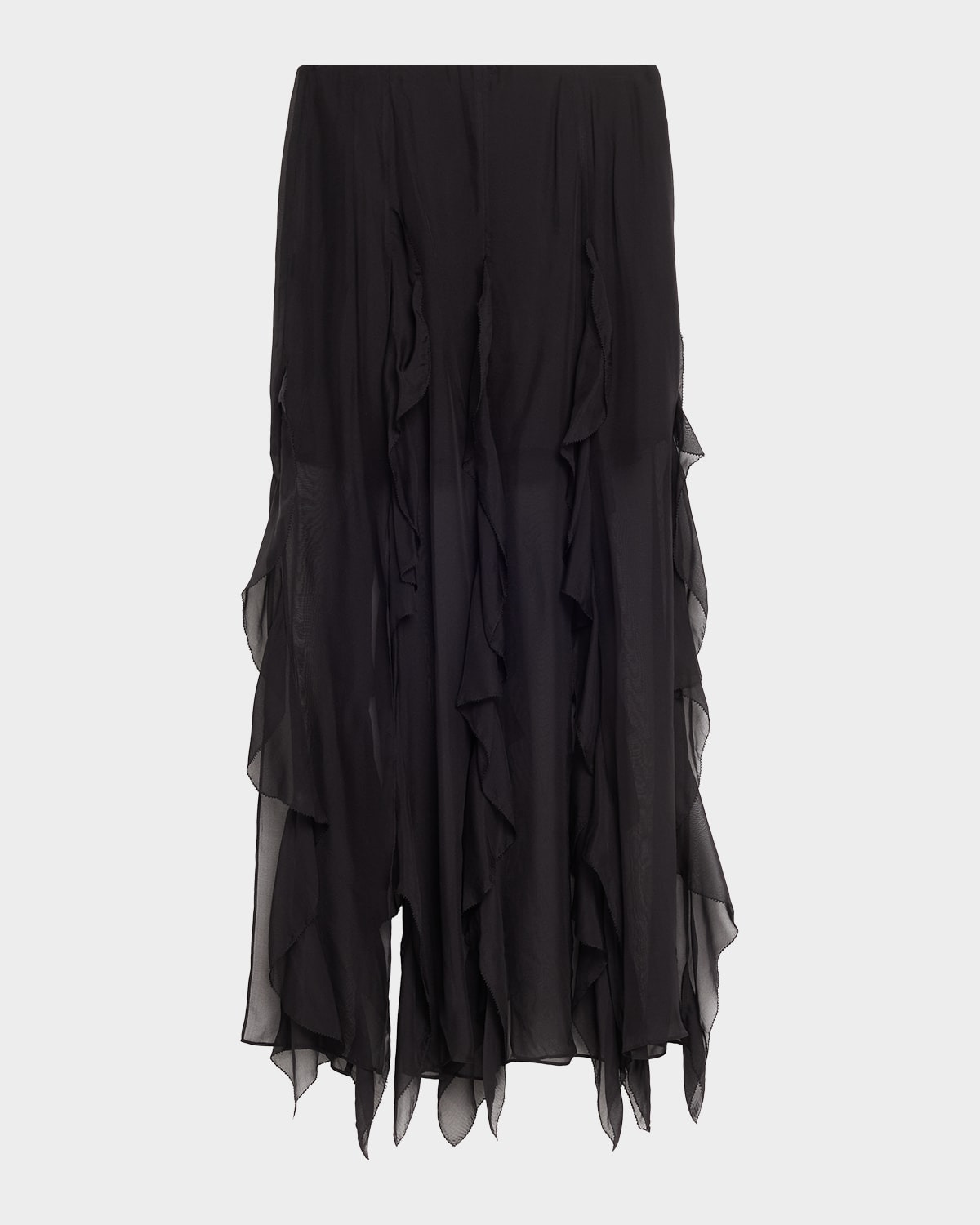 Cut from sheer luxurious silk, the "Ava" maxi skirt by Veronica Beard features cascading ruffles for an elegant yet edgy silhouette. High rise Slip silhouette Thighhigh slit Side zip closure Silk Lining: Polyester Dry clean only Imported