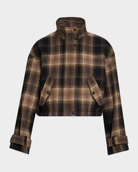 Featuring a seasonal plaid print, the "Bateman" jacket by Veronica Beard is crafted in a soft wool blend for versatility and comfort. Stand collar; twoway zipfront with snap placket Dropped shoulders Long sleeves with belted cuffs; approx. 33"L Angled flap pockets Classic fit Hem sits at the hip Wool/polyester Lining: Cupro Dry clean Imported