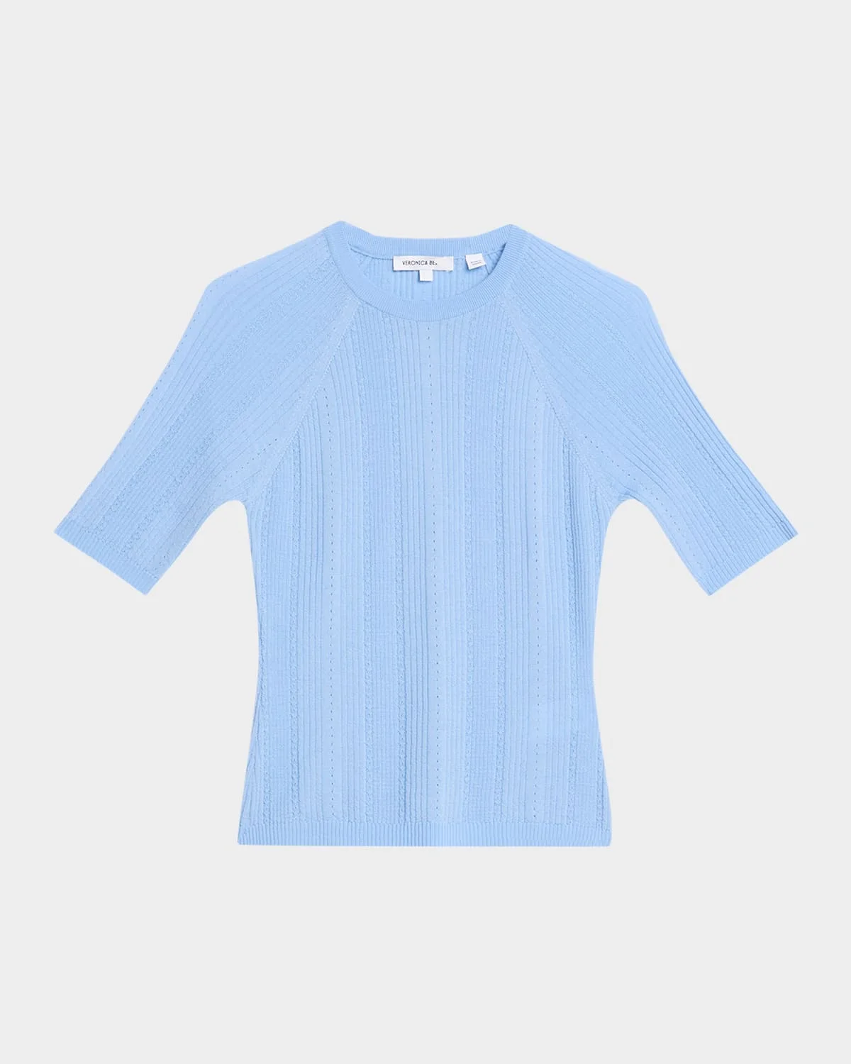 Detailed with an intricate pointelle knit design, the "Brielle" sweater by Veronica Beard is crafted from premium merino wool and finished with ribbed trim. Crew neckline Short raglan & nbsp;sleeves Classic fit Hem sits at the hip Pullover style Merino wool Dry clean only Imported SIZE & FITModel measurements: 5 & apos;10" tallModel is wearing a US size 4/Small
