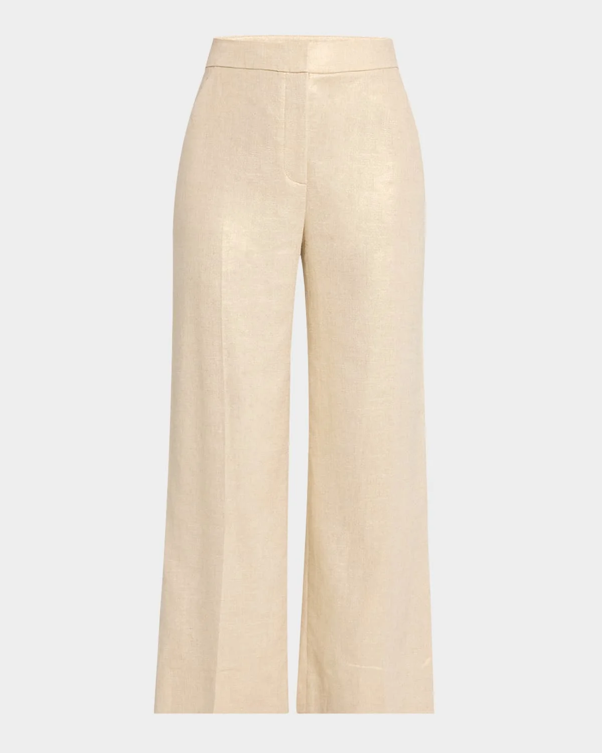 - Veronica Beard "Brixton" linen pants with a metallic sheen - High rise - Four-pocket style - Wide legs - Ankle length - Hook/zip fly; belt loops - Linen - Dry clean - Imported