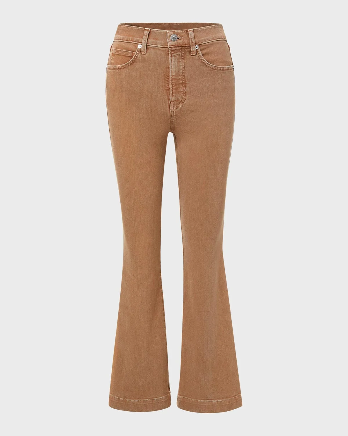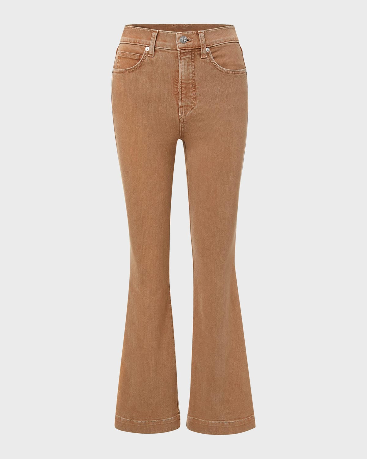 Veronica Beard Jeans "Carson" flaredleg jeans in colored denim Approx. 11.5" rise; 19.5" inseam; 28" outseam Fivepocket style High rise Fitted through hip; flared from knee Ankle length Button/zip fly; belt loops Cotton/polyester/polyurethane Machine wash cold inside out Made in USA from imported materials