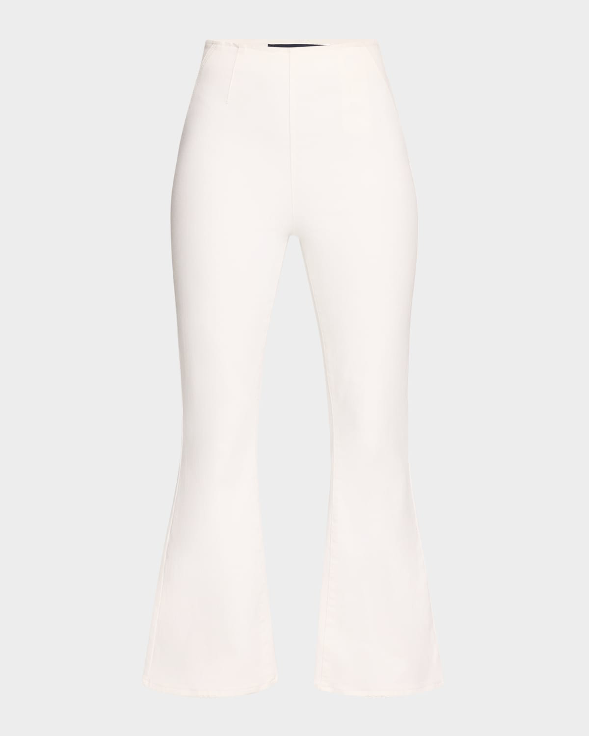 Veronica Beard Jeans "Carson OffDuty" kickflare jeans in white denim Approx. 11" rise; 27" inseam High rise Fitted through the hip and thigh Cropped length Pullon style Cotton/elastane Machine wash cold, inside out Imported