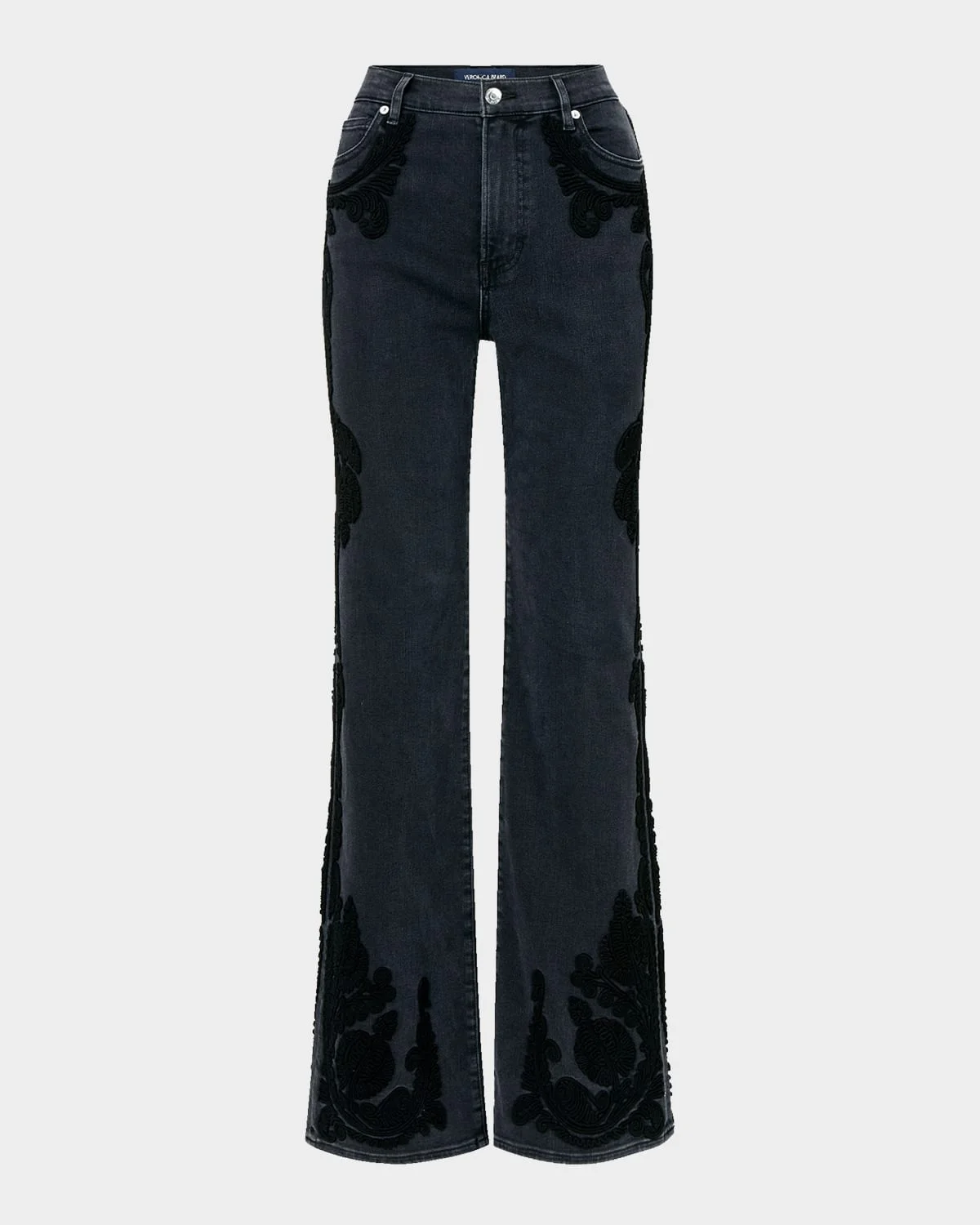 Crosbie Embroidered Slim Wide-Leg Jeans