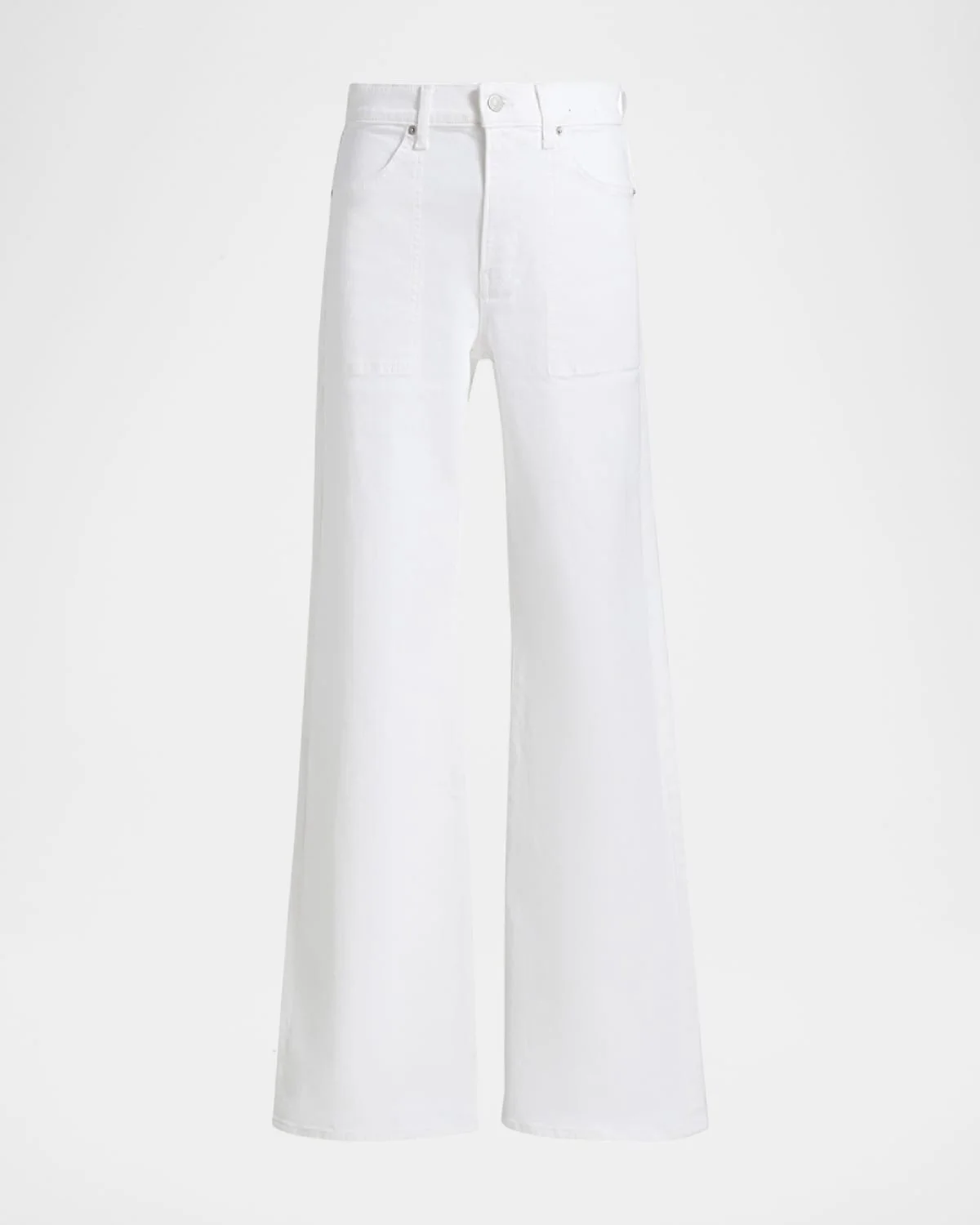 Veronica Beard "Crosbie" crisp white denim jeans High rise Fivepocket style Wide legs Full length Button/zip fly; belt loops Cotton/polyester/polyurethane Dry clean Made in USA