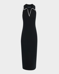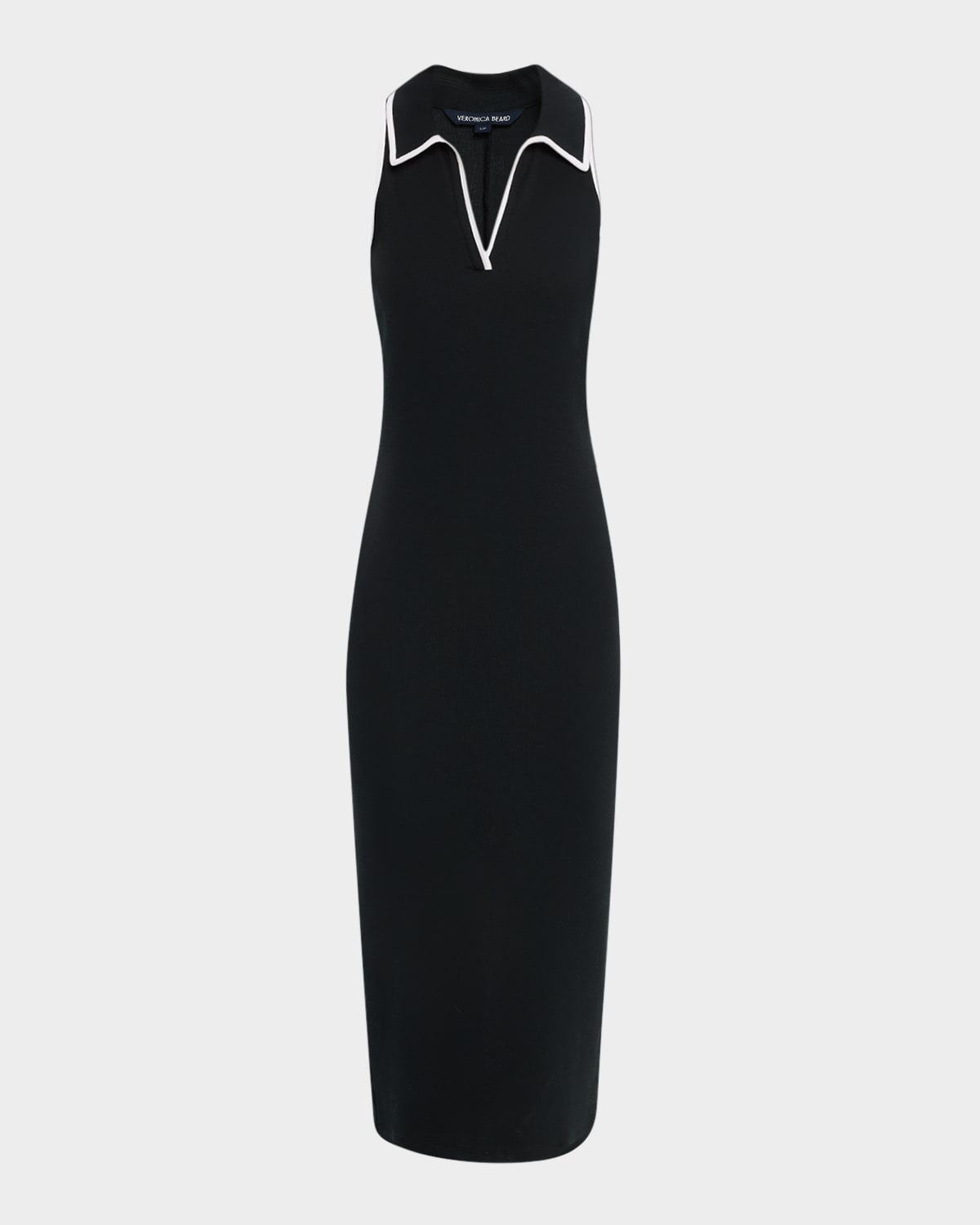 - Veronica Beard "Darien" knit midi polo dress finished with contrast trim - Point collar; V neckline - Sleeveless - Figure-hugging silhouette - Hem falls below the knee - Slipover style - Cotton/elastane - Machine wash cold - Imported