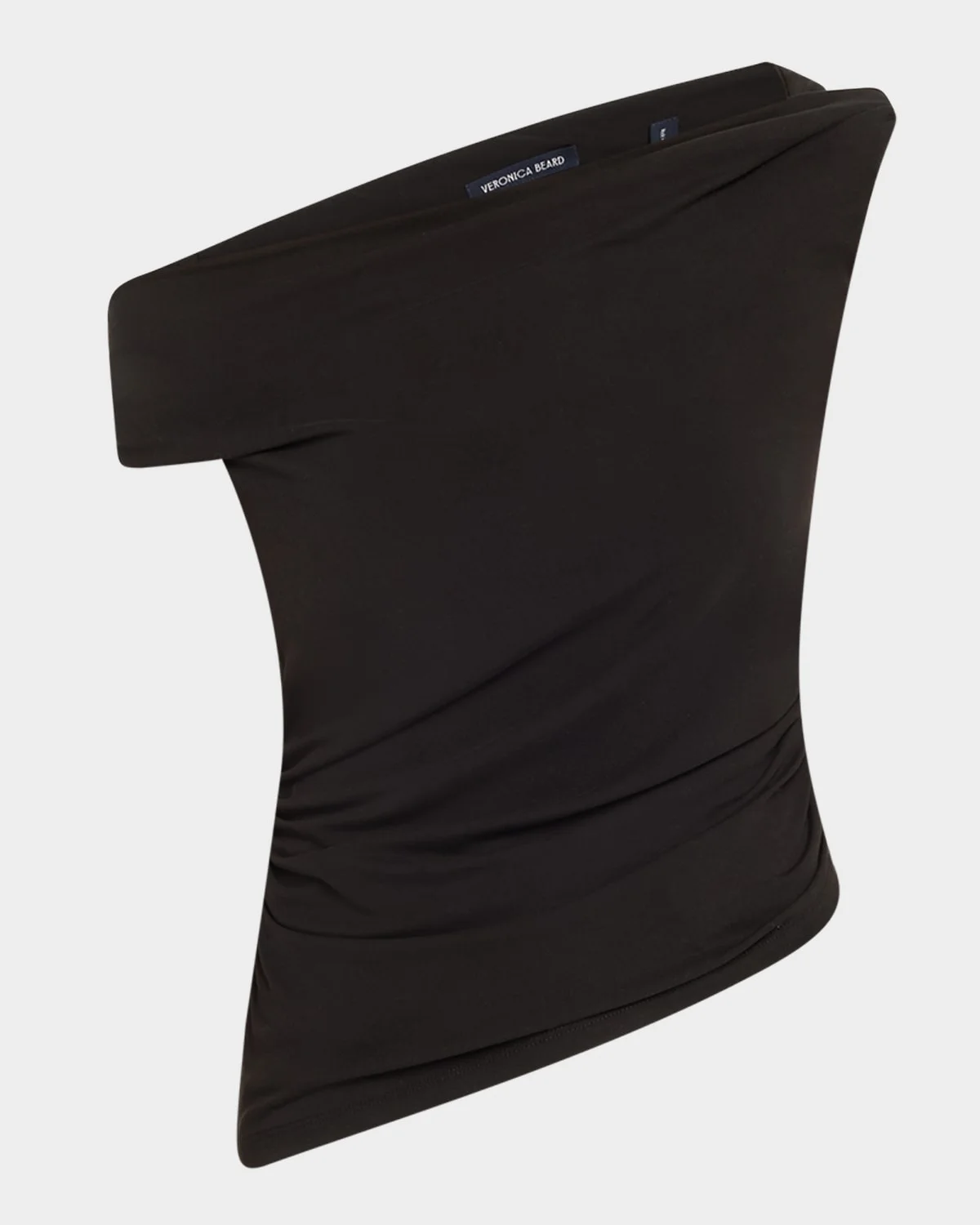 - Veronica Beard "Delanna" jersey top finished with draping - One-shoulder neckline - Sleeveless - Relaxed fit - Hem sits at the hip - Pullover style - Lyocell/elastane - Machine wash cold - Imported