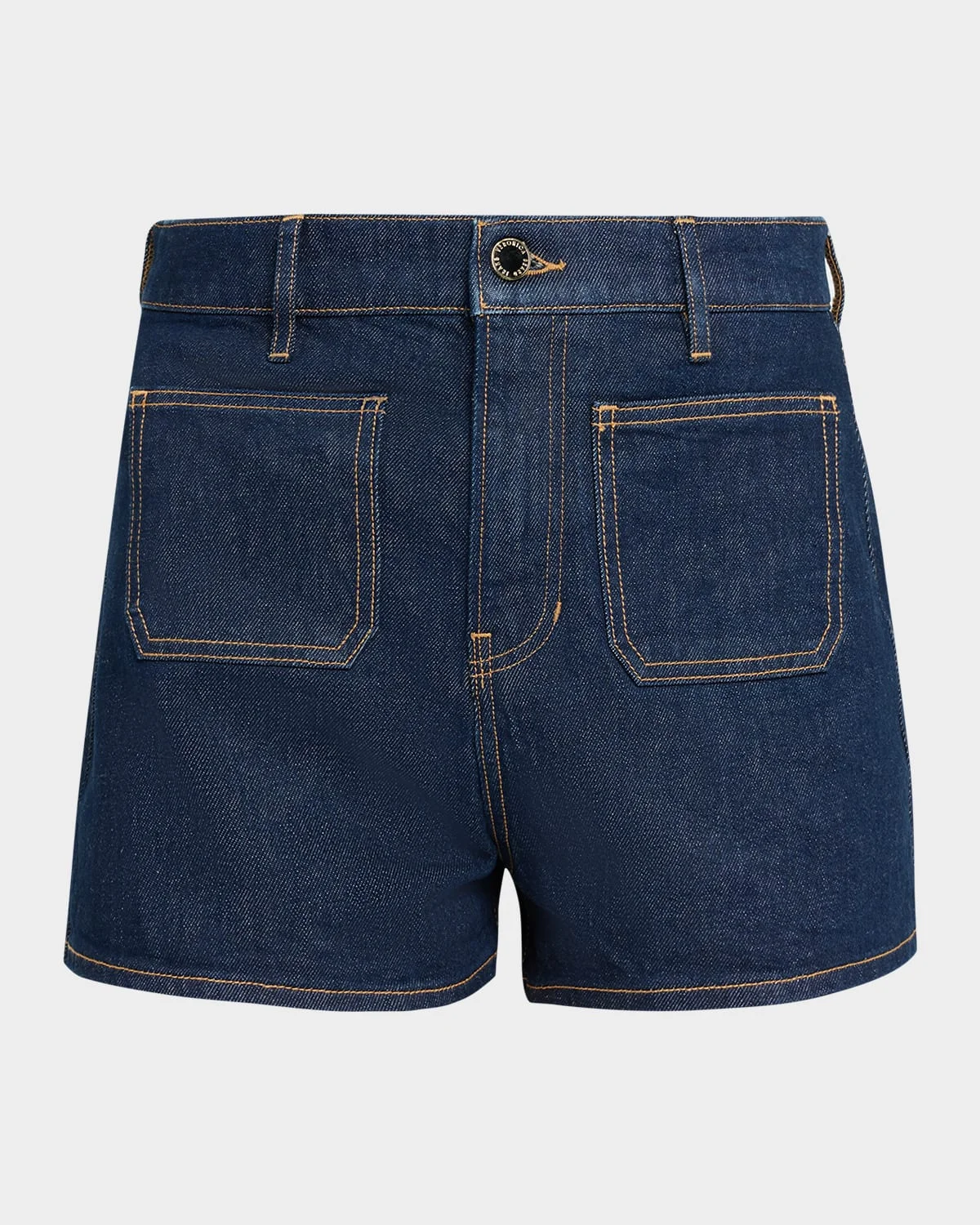 FRAME "Elijah" sleek shorts crafted from comfort-stretch denim & nbsp; High rise Front and back patch pockets Tailored fit Button/zip fly; belt loops Cotton/elastane Machine wash cold Imported SIZE & FITModel measurements: 5 & apos;10" tallModel is wearing a US size 4/Small
