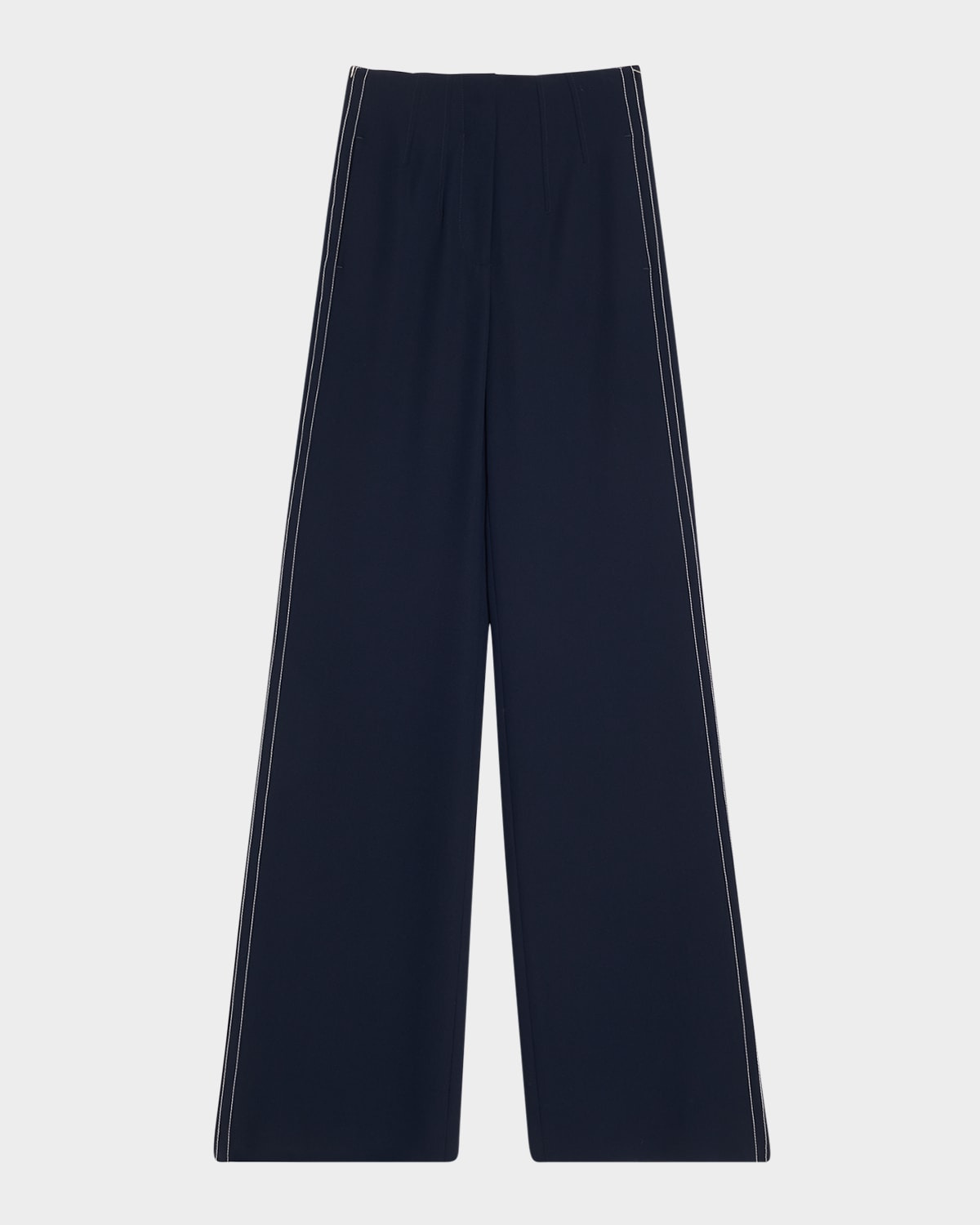 - Veronica Beard "Elin" wide-leg pants enhanced with contrasting side stripes - Ultra-high rise - Seamed waistband - Four-pocket style - Tailored fit - Full length - Hook/zip fly - Polyester - Dry clean - Made in USA from imported materials