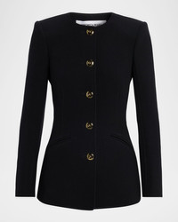 Veronica Beard's "Jessup" jacket is tailored from an Italian virginwool blend with a subtly flared hem for a flattering shape Approx. 28.3"L from shoulder to hem Collarless neckline; button front Long sleeves with button cuffs; approx. 32.3"L Slanted welt pockets Tailored fit Hip length Virgin wool/elastane Lining: Cupro Dry clean Imported