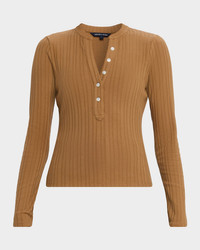 Veronica Beard "Jocelyn" henley top features a stretch cotton rib, an ideal yearround layering essential Approx. 31.5"L from shoulder to hem Crew neckline; fivebutton placket Long sleeves Fitted Pullover style Cotton/elastane Dry clean only Imported