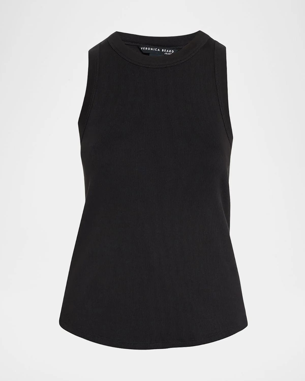 Veronica Beard "Jordyn" ribknit tank top Crew neckline Sleeveless Racerback Slim fit Pullover style Cotton/elastane Made in Peru