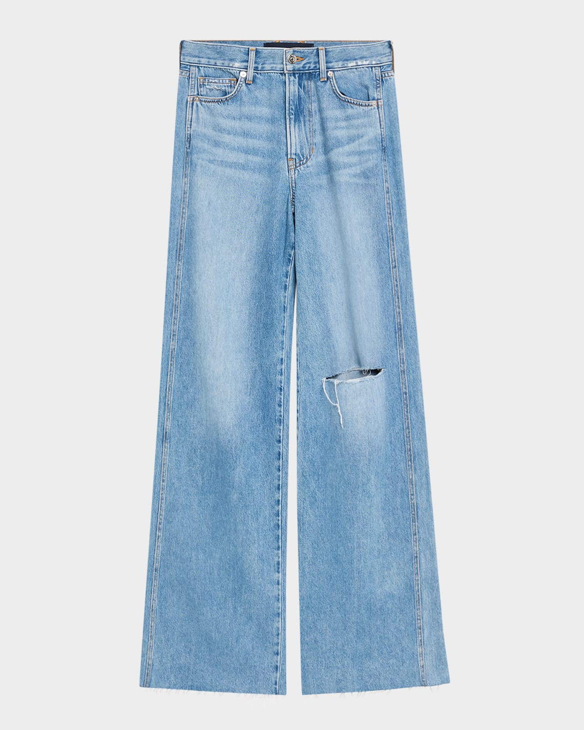 - Veronica Beard "Kasey" wide-leg jeans finished with a raw hem in Dream Denim - Dream Denim fabric is a premium cotton-silk blend that’s soft to the touch with effortless drape; our most comfortable denim yet. - Approx. 11.5" rise; 32.5" inseam - Mid-rise; sits high on the hip - Five-pocket style - Relaxed fit - Full length - Button/zip fly; belt loops - Cotton/lyocell/silk - Machine wash inside out - Made in USA from imported materials