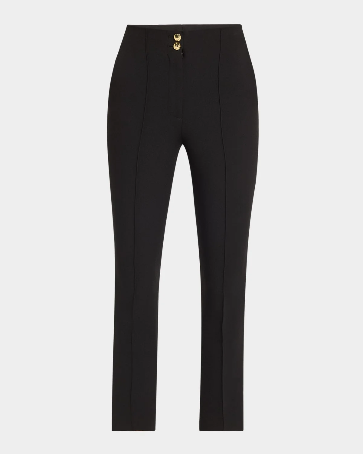 Veronica Beard "Kean" pants finished with front pintuck seaming Approx. 11.3" rise; 27" inseam Mid rise sits high on hip Slanted side and back welt pockets Cropped fit Skinny legs Button/zip fly Polyester/elastane Lining: Polyester Dry clean Made in USA from imported materials