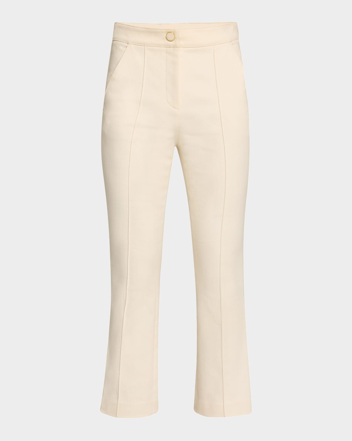- Veronica Beard "Kimra" straight-leg pants with a pintuck front - High rise - Four-pocket style - Slim fit - Cropped length - Button/zip fly; belt loops - Cotton - Dry clean - Imported
