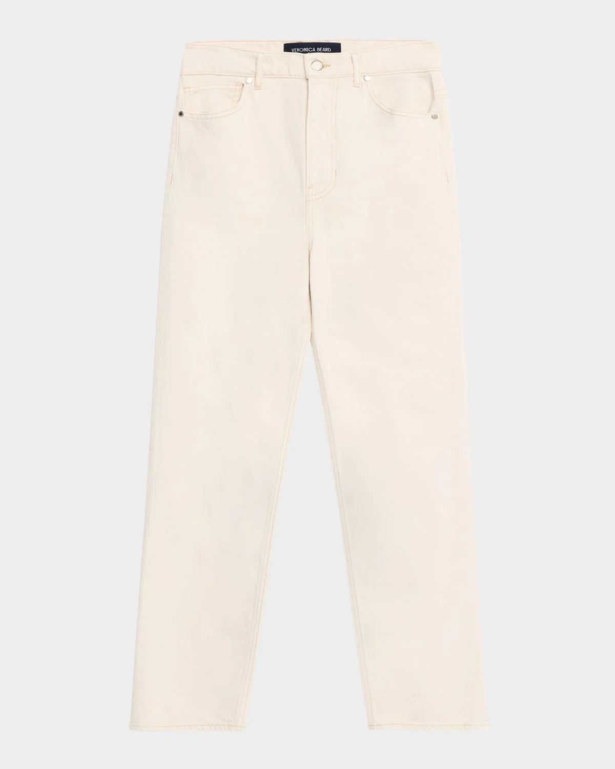 Veronica Beard "Leah" straightleg jeans crafted from comfortstretch denim Approx. 11" rise; 29" inseam Midrise; sits high on the hip Fivepocket style Relaxed fit Ankle length Button/zip fly; belt loops Cotton/elastane Machine wash cold Made in USA from imported materials