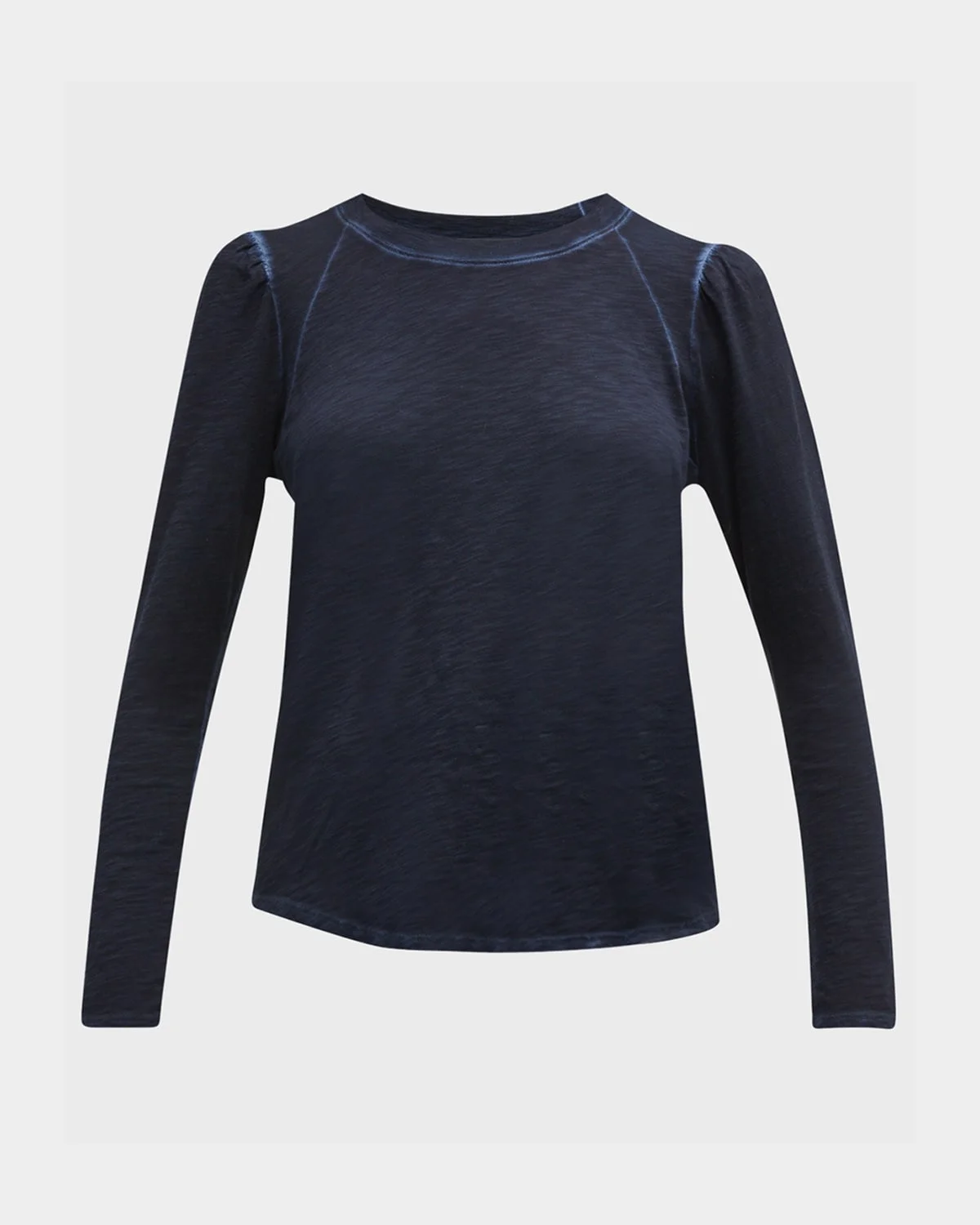 - Veronica Beard "Mason" baseball tee with faded seam details throughout in cotton - Crew neckline - Long sleeves - Easy fit - Hem sits at the hip - Pullover style - Cotton - Machine wash cold - Imported - Model is 5'10"/177cm.