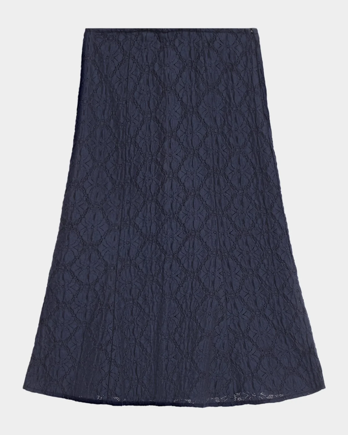 Veronica Beard "Massimo" midi skirt crafted from delicate cotton lace with an intricate diamond-lattice pattern & nbsp; High rise A-line silhouette Hem falls below the knee Invisible side zip & nbsp; Cotton/polyester/elastane Machine wash cold, inside out & nbsp; Imported SIZE & FIT Model measurements: 5 & apos;10" tall Model is wearing a US size 4/Small