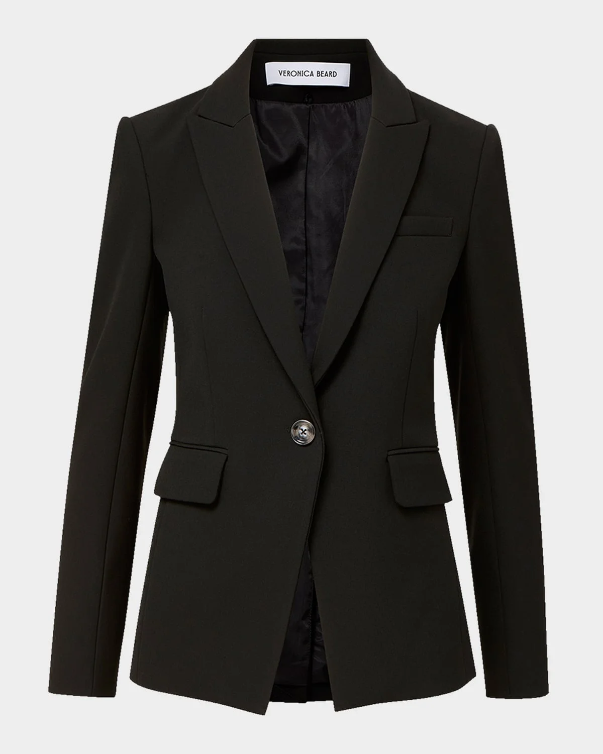 Veronica Beard "Miller" dickey jacket finished with a single-breasted front & nbsp; Compatible with Veronica Beard dickey & apos;s (sold separately) Notch lapels & nbsp; Long sleeves with button cuffs Chest welt pocket Hip flap pockets Tailored fit Back vent Button-front & nbsp; Polyester/viscose/cotton Dry clean Made in USA
