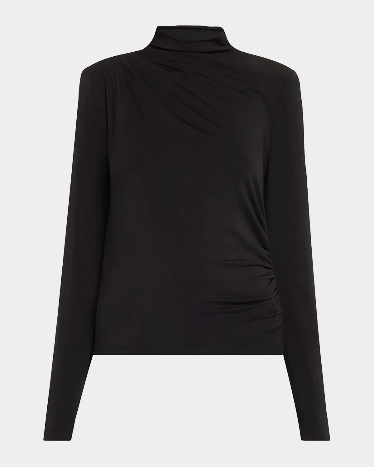 Veronica Beard "Mylie" stretch jersey top with gathering throughout Turtleneck Long sleeves Easy fit Hem sits at the hip Pullover style Lyocell/elastane Unlined Machine wash cold Imported