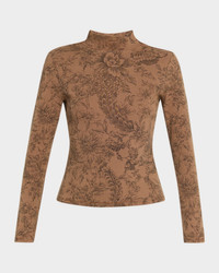 Veronica Beard "Nate" ribbedknit top in floral print Mock neckline Long sleeves Slim fit Hem sits at the hip Pullover style Cotton/elastane Machine wash Imported
