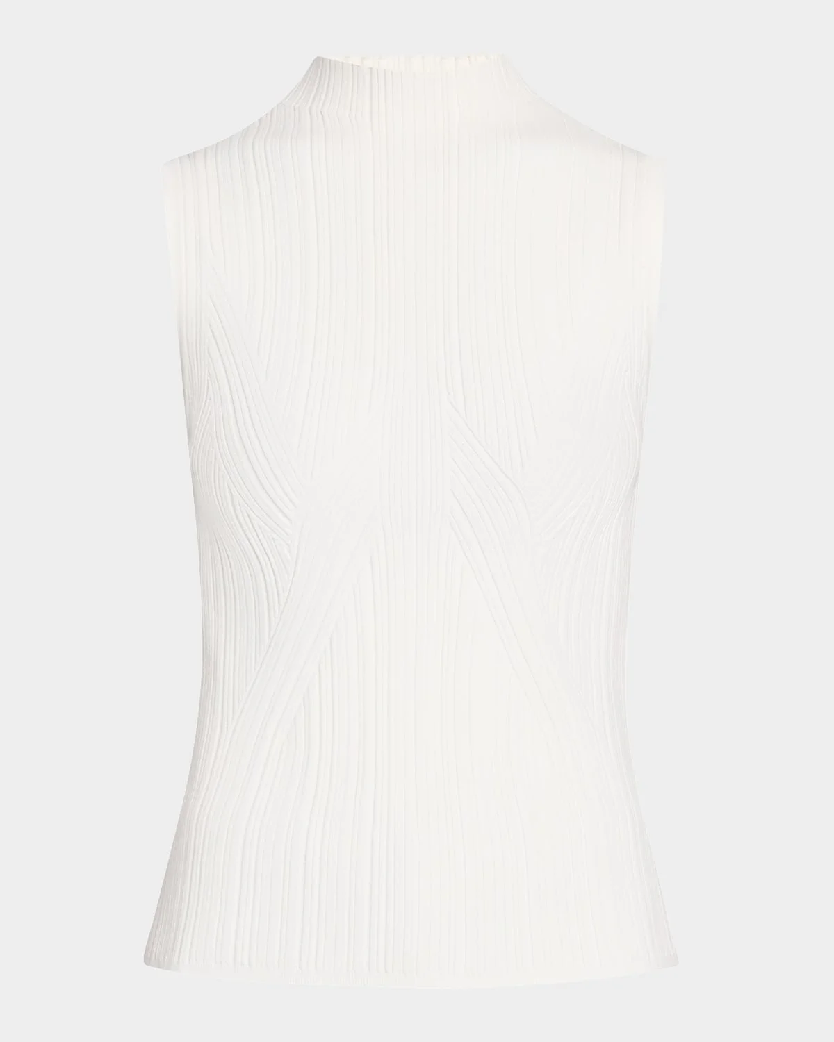 - Veronica Beard "Nellie" ribbed top featuring a mock neckline - Sleeveless - Fitted - Hem sits at the hip - Pullover style - Viscose - Dry clean - Imported