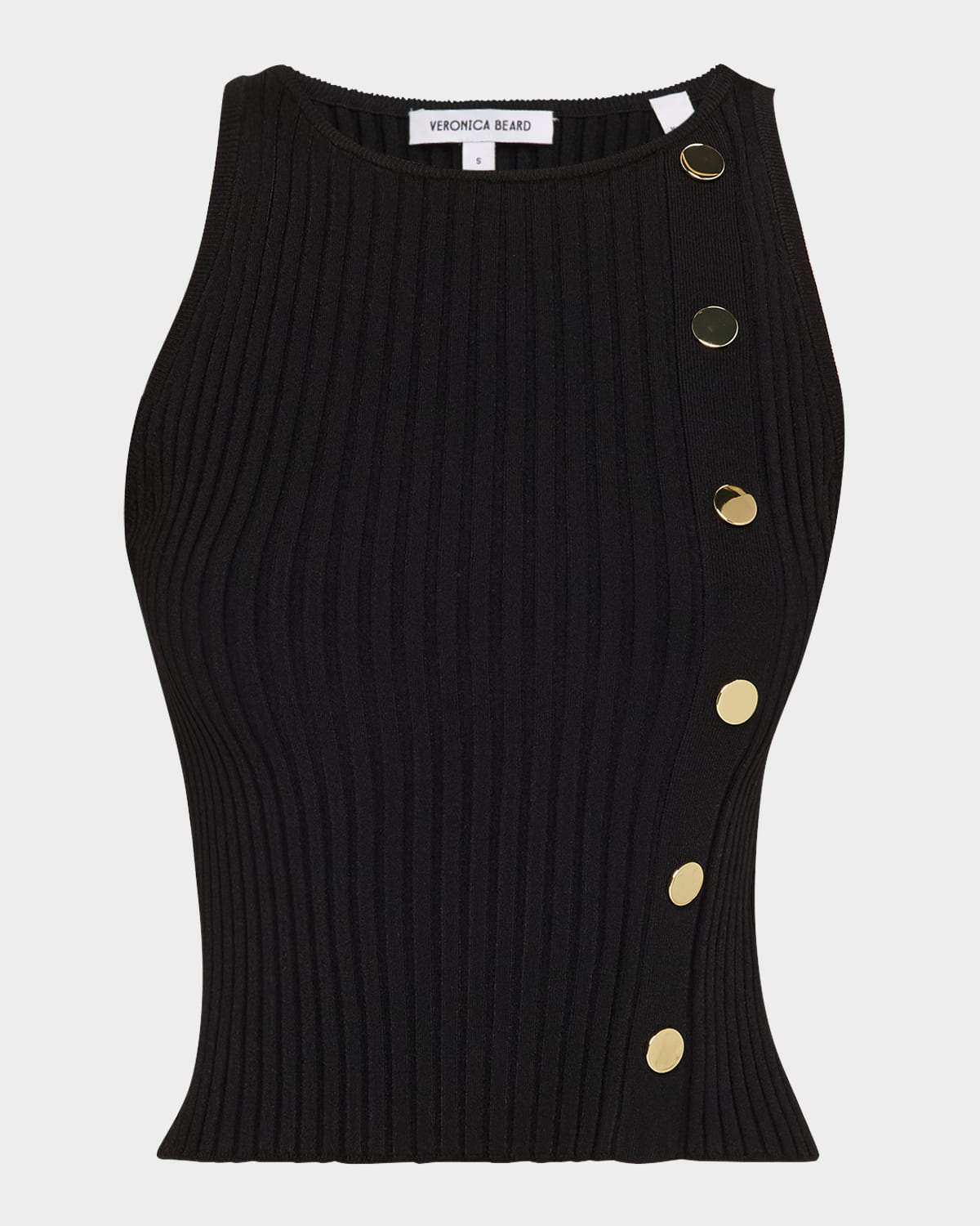 - Veronica Beard "Nelson" ribbed tank top finished with gold-tone buttons - Crew neckline - Sleeveless - Fitted silhouette - Hem sits at the hip - Polyester - Imported