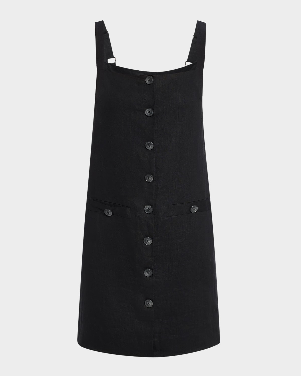 - Veronica Beard "Nico" linen mini dress finished with a button-front - Square neckline - Adjustable straps - Hip welt pockets - Shift silhouette - Hem falls above the knee - Center back zip - Linen - Dry clean - Imported