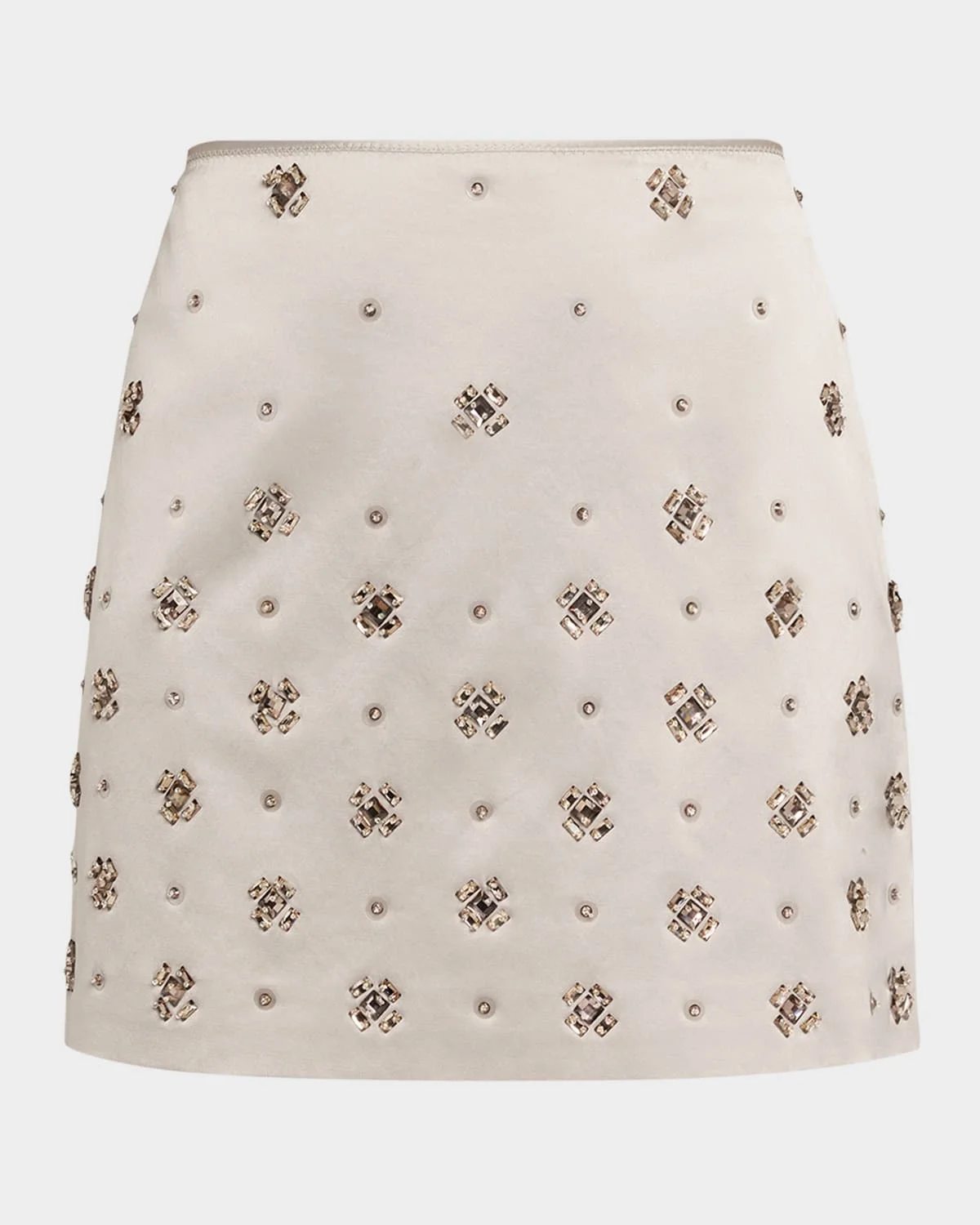 Crafted from cotton sateen, the "Olenna" skirt by Veronica Beard is decorated with handembroidered crystals and sequins for the perfect goto holiday mini skirt. High rise Skirt falls straight from hip to hem Hem falls above the knee Center back zip Cotton/polyester/elastane Lining: Polyester Spot clean only Imported