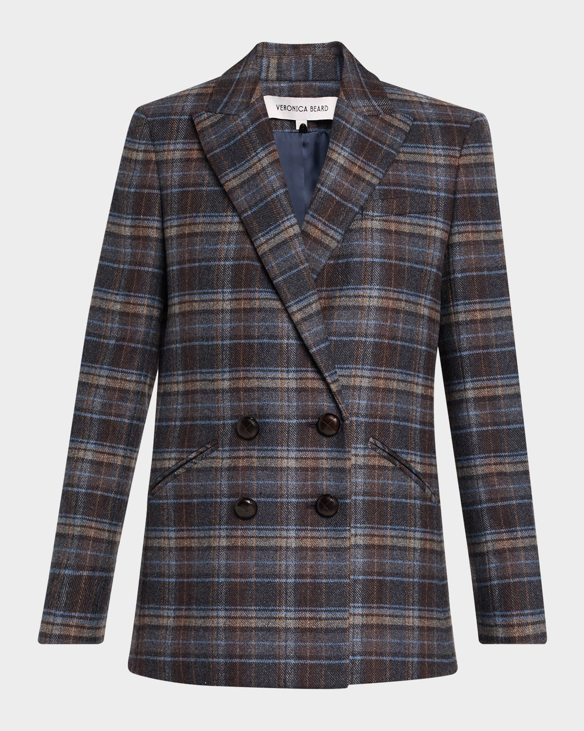Featuring a fallinspired plaid pattern, the "Oria" dickey jacket by Veronica Beard is crafted from a soft wool blend. Compatible with Veronica Beard dickey's (sold separately). Peak lapels Doublebreasted front Long sleeves with button cuffs; approx. 32.3"L Chest and hip welt pockets Tailored fit Doublevented back Buttonfront Wool/polyester Lining: Cupro Dry clean Imported