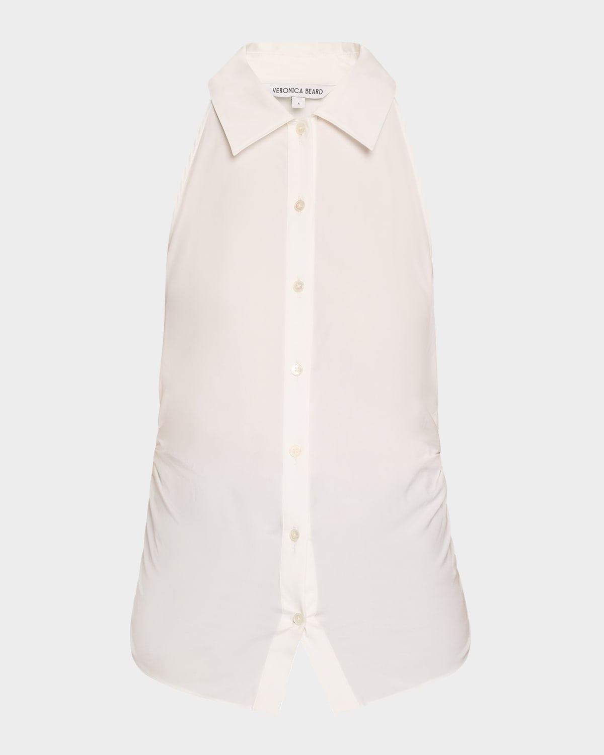- Veronica Beard "Regina" crisp cotton shirt with ruching for added shape - Point collar - Sleeveless - Classic fit - Hem falls to the hip - Button-front - Cotton - Dry clean - Imported