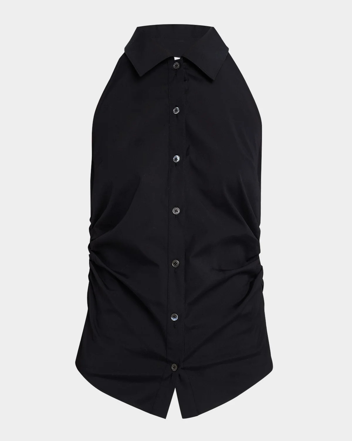 - Veronica Beard "Regina" crisp cotton shirt with ruching for added shape - Point collar - Sleeveless - Classic fit - Hem falls to the hip - Button-front - Cotton - Dry clean - Imported