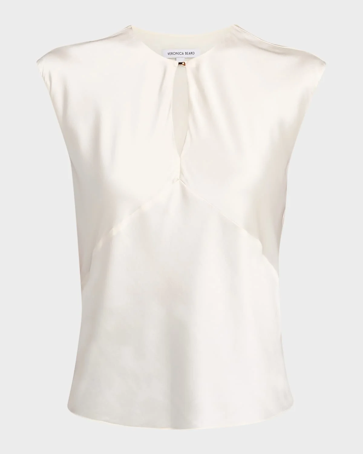 Crafted from a stretch silkblend, the "Sparrow" top by Veronica Beard boasts a front keyhole cutout and flattering seam details. Crew neckline Sleeveless Classic fit Hem falls to the hip Front hook closure Silk/viscose/elastane Lining: Polyester Dry clean Imported
