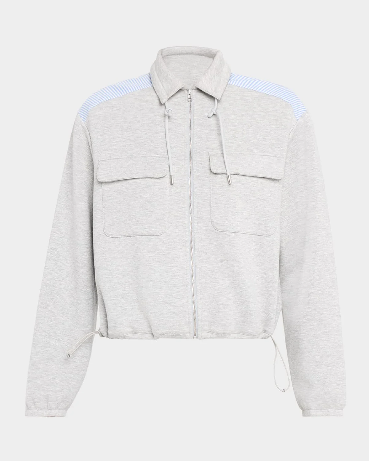 Designed with a refined silhouette for all-day comfort, the "Stellant" jacket by Veronica Beard is crafted from stretch scuba and boasts a striped yoke that adds a modern flair to a classic silhouette. Stand collar with drawstrings Long sleeves & nbsp; Dual chest pockets Blouson fit Adjustable drawcord hem Zip-front & nbsp; Rayon/cellulose acetate/polyester/elastane Machine wash Imported SIZE & FITModel measurements: 5 & apos;10" tallModel is wearing a US size 4/Small