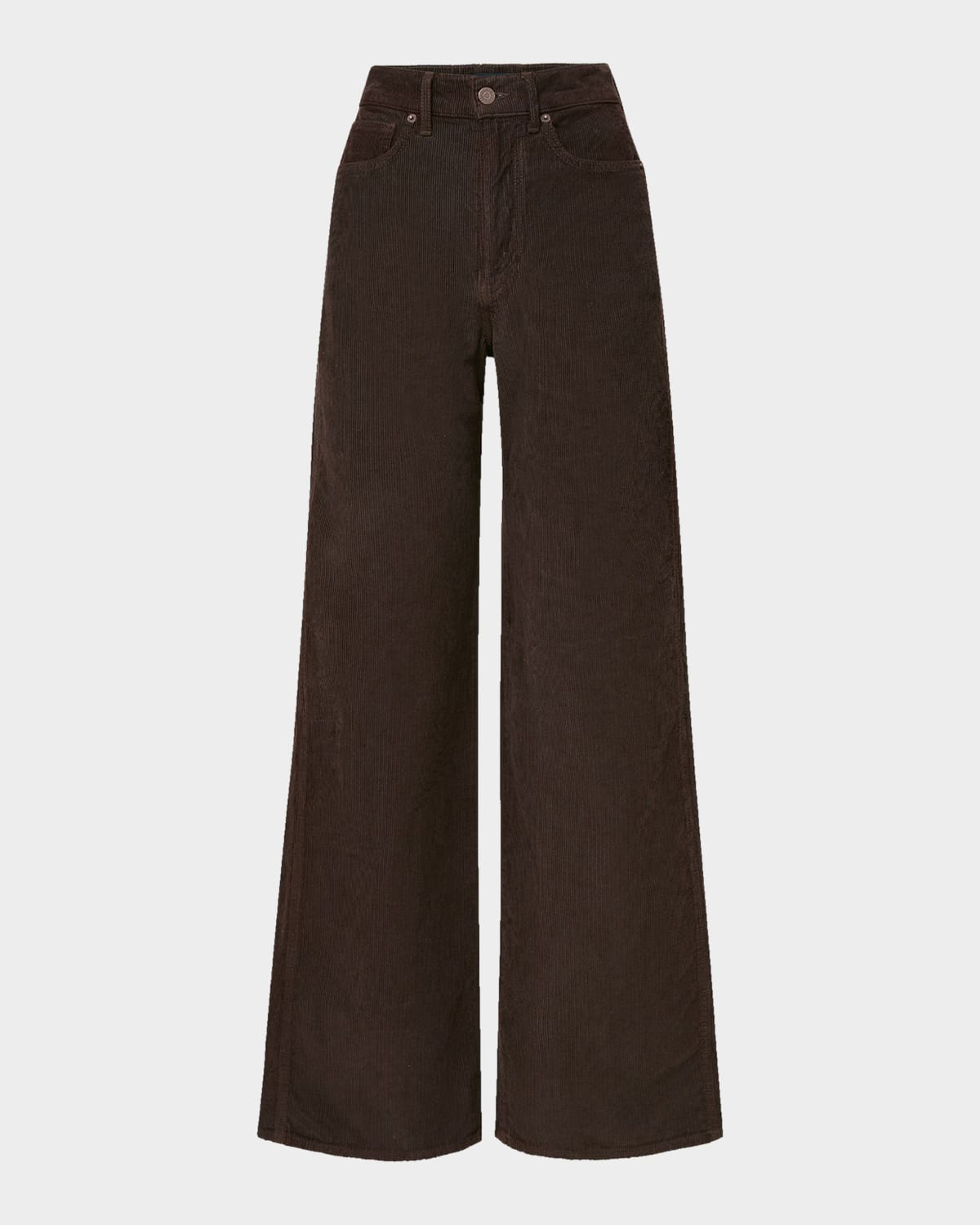 - Crafted from premium cotton in a textured corduroy finish, the "Taylor" pants by Veronica Beard offer a flattering, ankle-grazing silhouette - Approx. 12" rise; 32" inseam - High rise - Five-pocket style - Full length - Wide legs - Button/zip fly; belt loops - Cotton - Made in USA