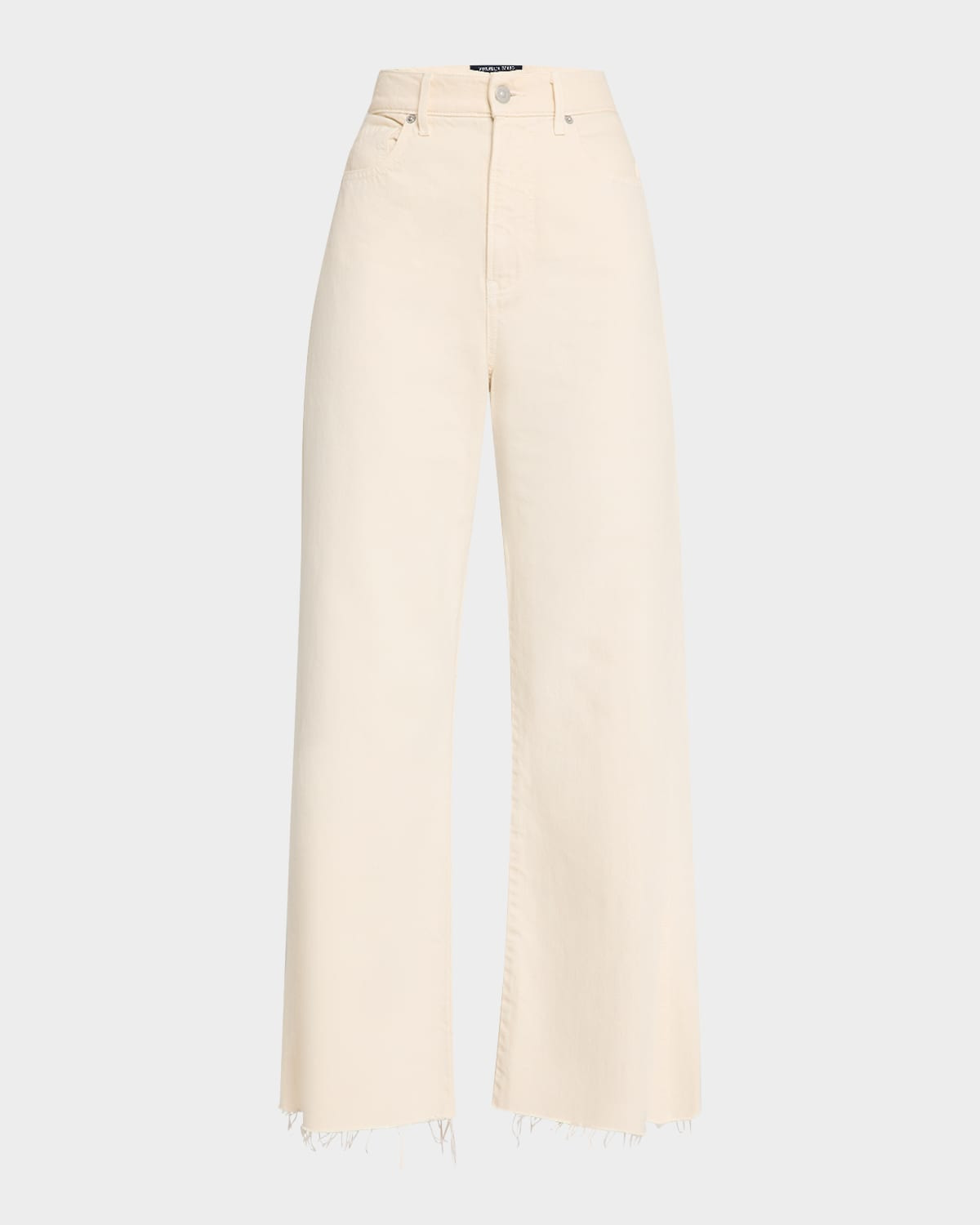 Veronica Beard Jeans "Taylor" wideleg jeans featuring a raw hem in colored denim Approx. 12" rise; 27" inseam; 22" outseam High rise Fivepocket style Loose fit Cropped length Button/zip fly; belt loops Cotton Machine wash cold Made in USA from imported materials