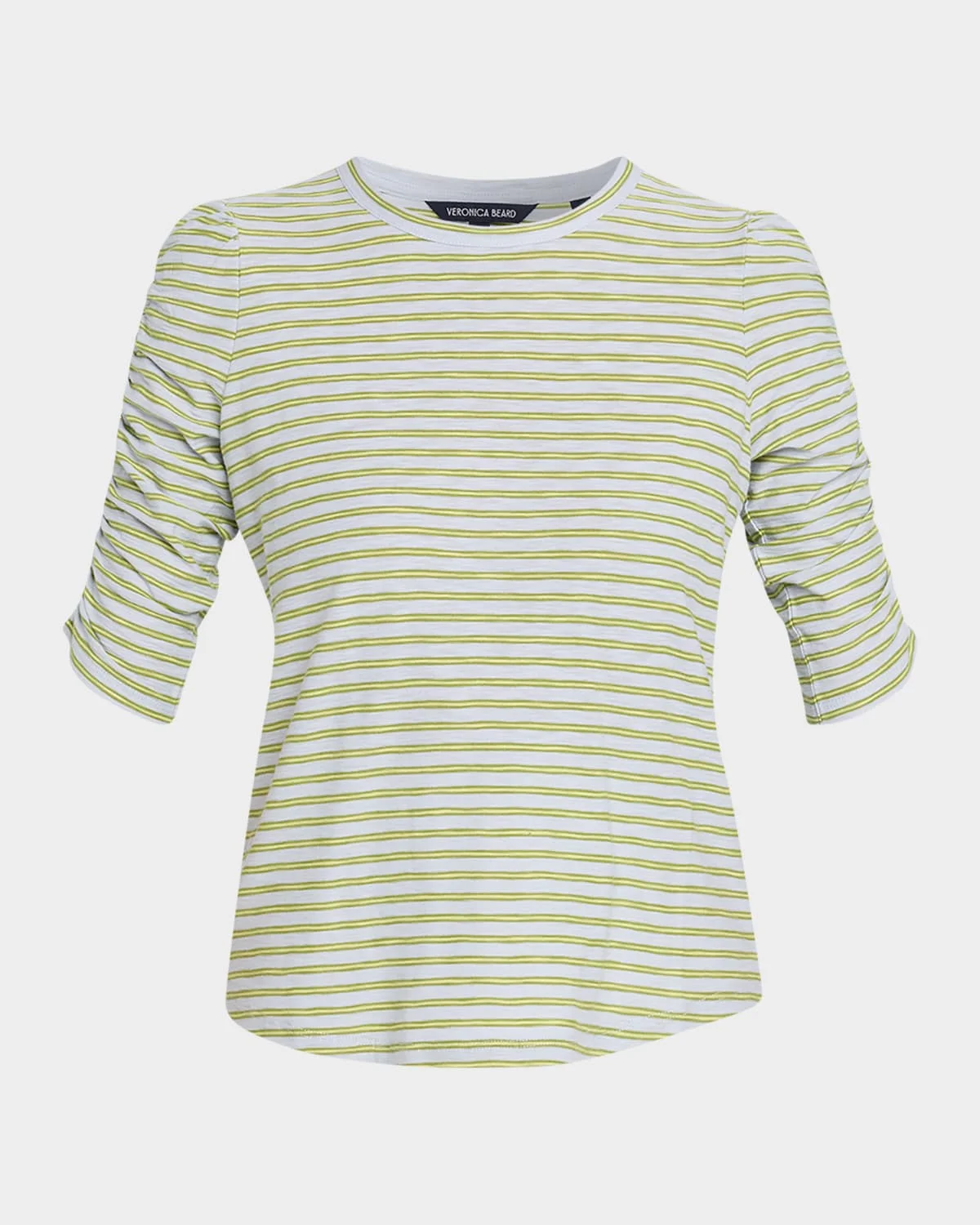 Veronica Beard "Waldorf" tee finished with shirred sleeves crafted from premium Pima cotton. Crew neckline Elbow-length sleeves Relaxed silhouette Curved hem Pullover style Cotton Unlined Machine wash cold Made in Peru SIZE & FITModel measurements: 5 & apos;10" tallModel is wearing a US size 4/Small