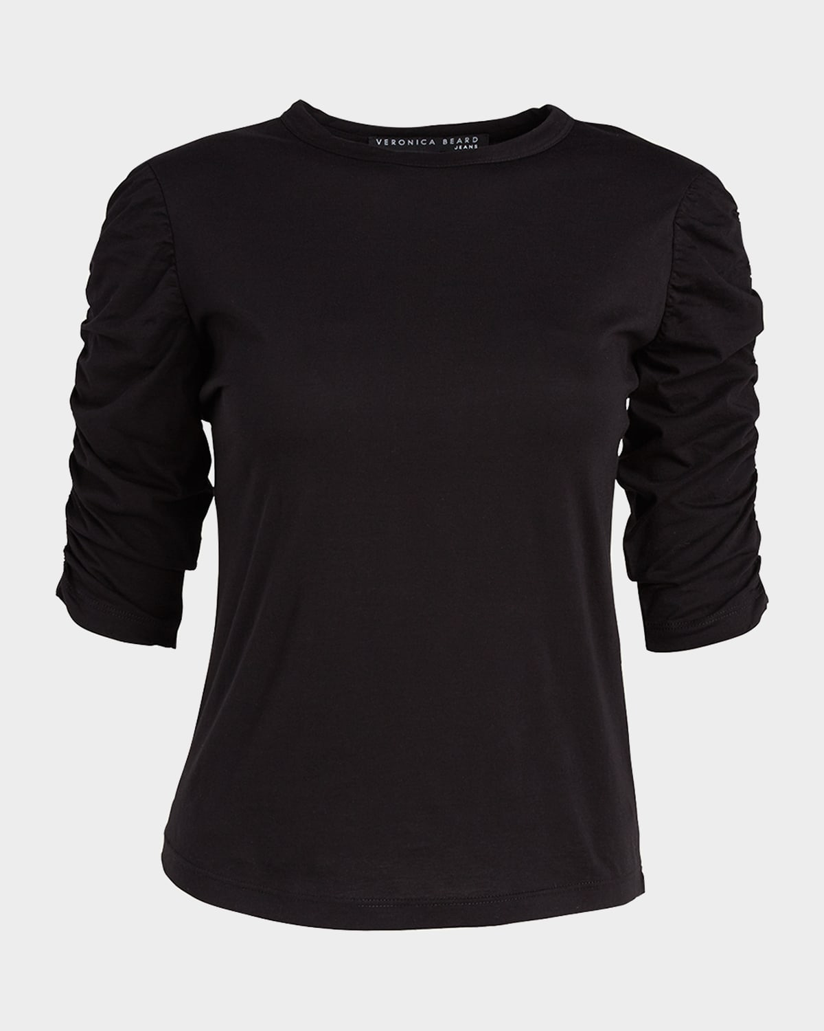 - Veronica Beard "Waldorf" tee with shirred sleeves. - Crew neckline. - Elbow sleeves. - Relaxed silhouette. - Curved hem. - Pullover style. - Pima cotton. - Made in USA of imported material.