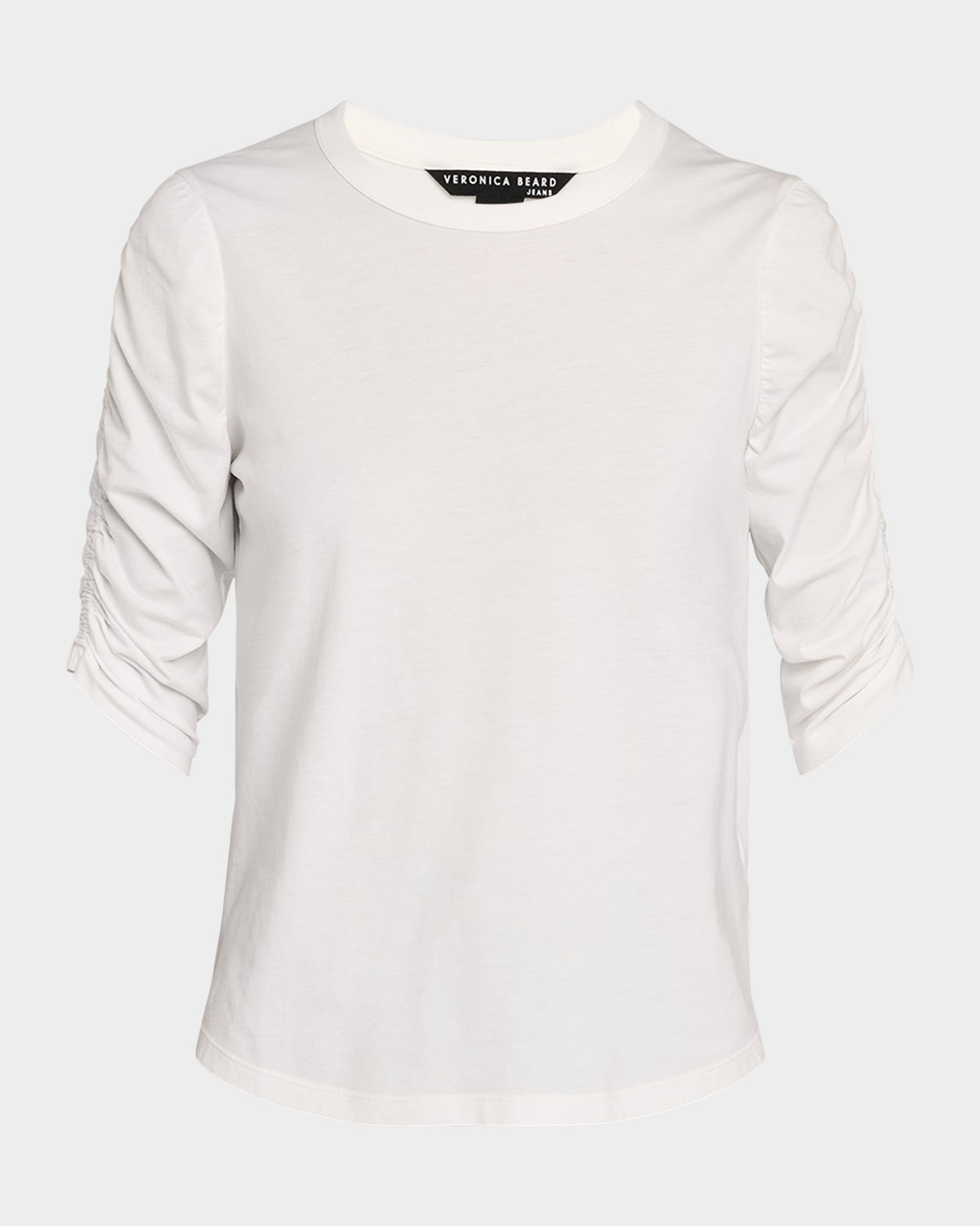 - Veronica Beard "Waldorf" tee with shirred sleeves. - Crew neckline. - Elbow sleeves. - Relaxed silhouette. - Curved hem. - Pullover style. - Pima cotton. - Made in USA of imported material.