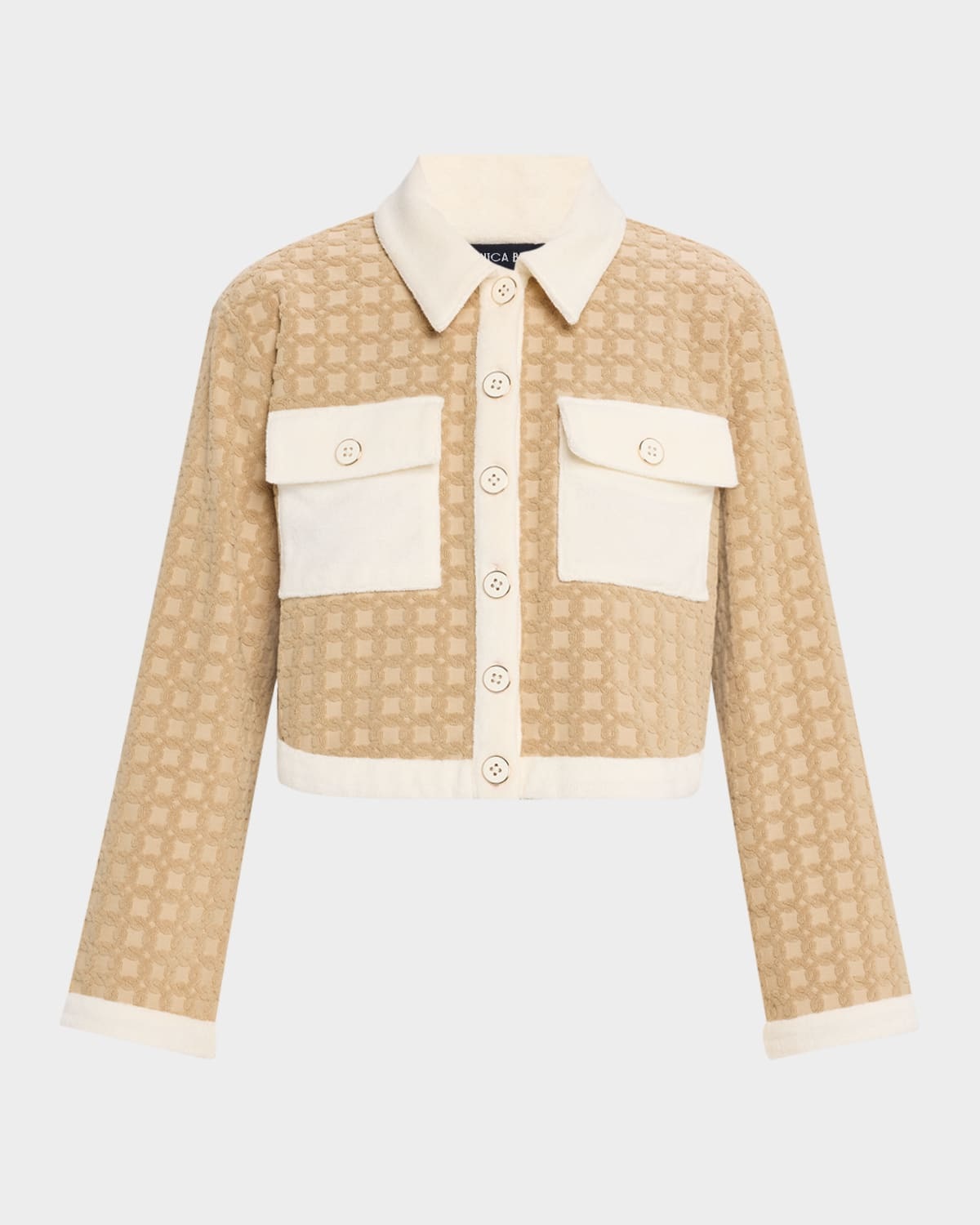 - Veronica Beard "Zariah" stretch cotton cardigan finished with contrast trim in a basketweave pattern - Point collar - Long sleeves; approx. 31"L - Dual chest pockets - Boxy fit - Cropped length - Button-front - Cotton/polyester - Machine wash cold - Imported