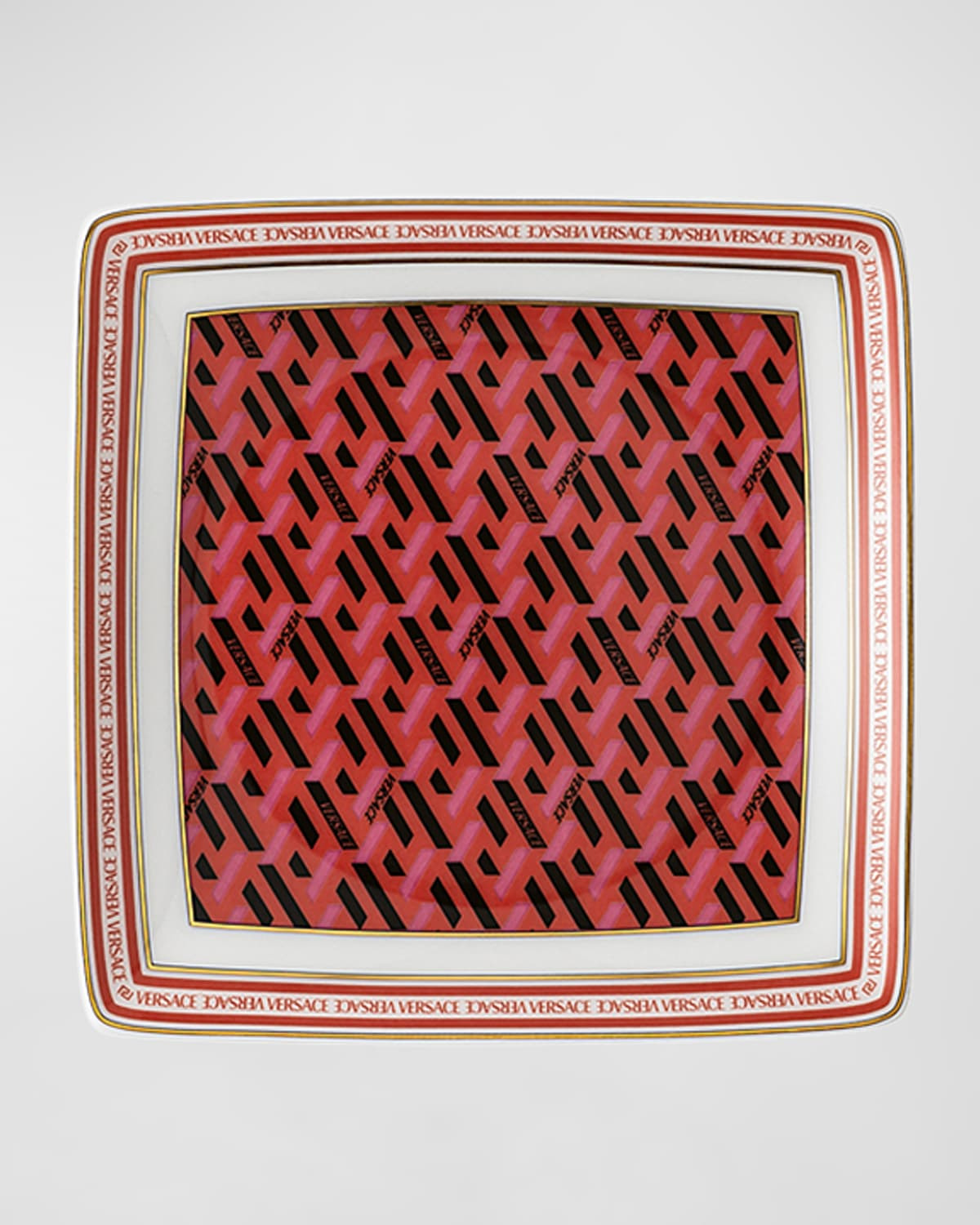 The subtle geometric accents are contrasted with black and white to create an illusionistic effect Made of porcelain Approx. 4.5"Sq. Sold individually Dishwasher safe Made in Germany