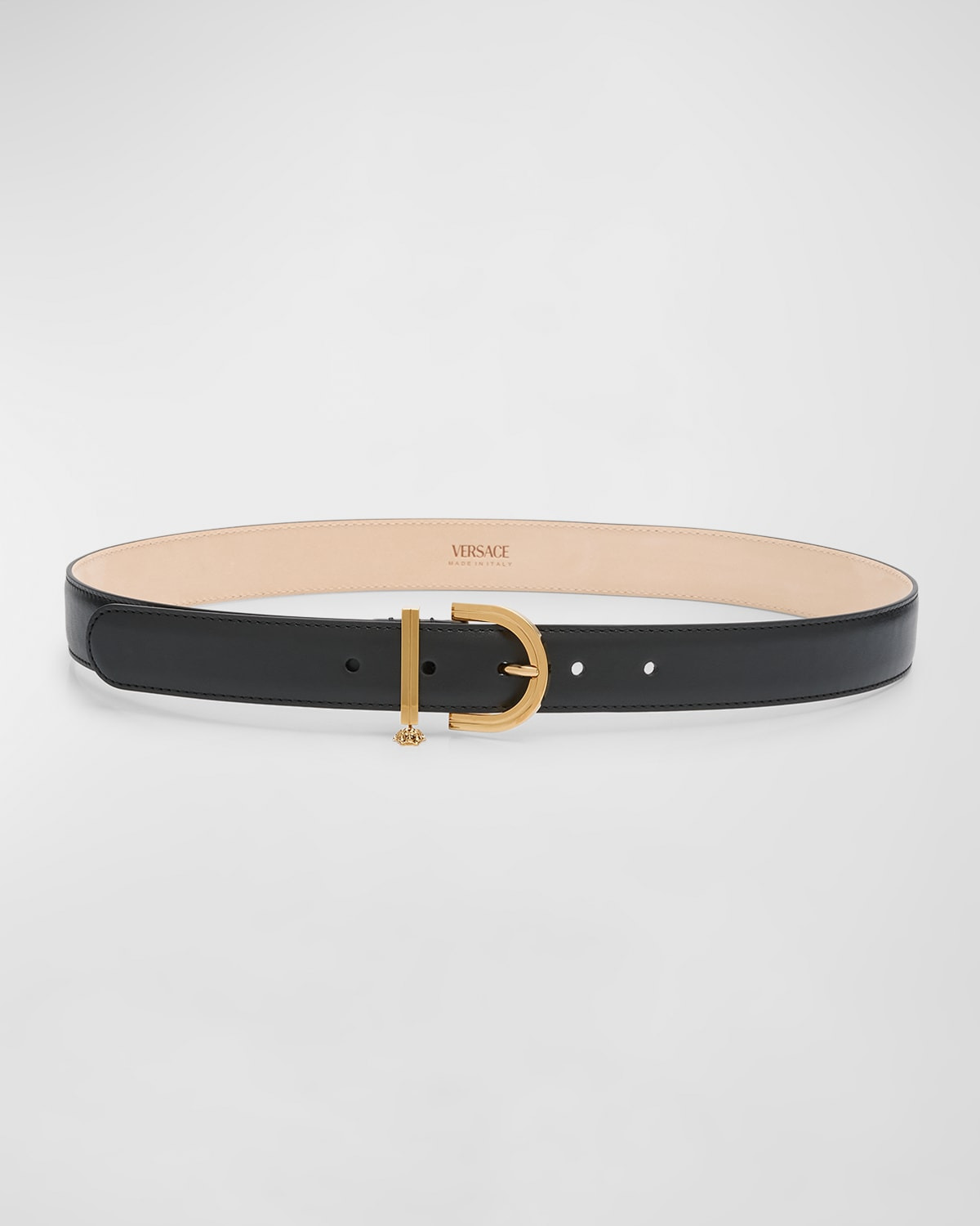 - Versace belt in leather and brass - Features a Medusa charm - Adjustable fit - Frame buckle - Spot clean - Made in Italy